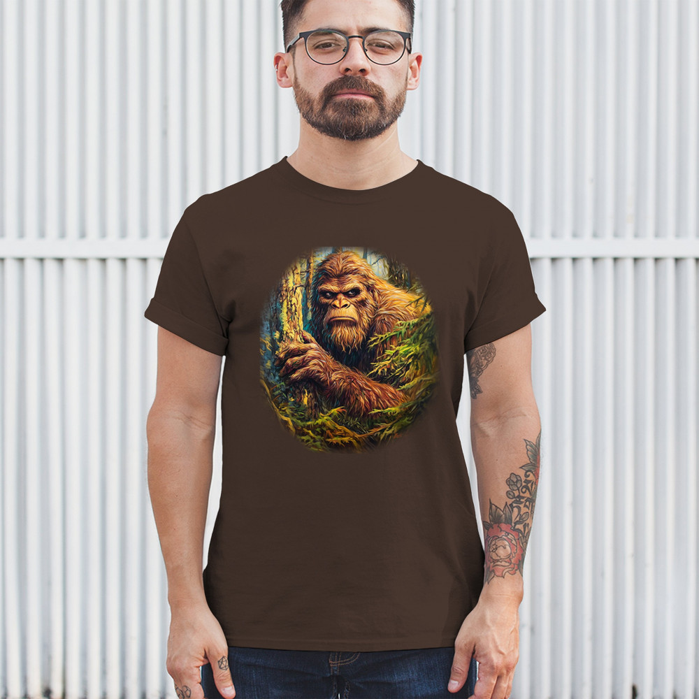 Dive into wilderness mystery with this detailed Bigfoot design. Featuring a lifelike Sasquatch in forest shadows, it’s built for fans of cryptid legends, forest adventures, and bold outdoor style. Perfect for hikes, campfire nights, and Bigfoot festivals, this design brings legendary creature vibes to life.