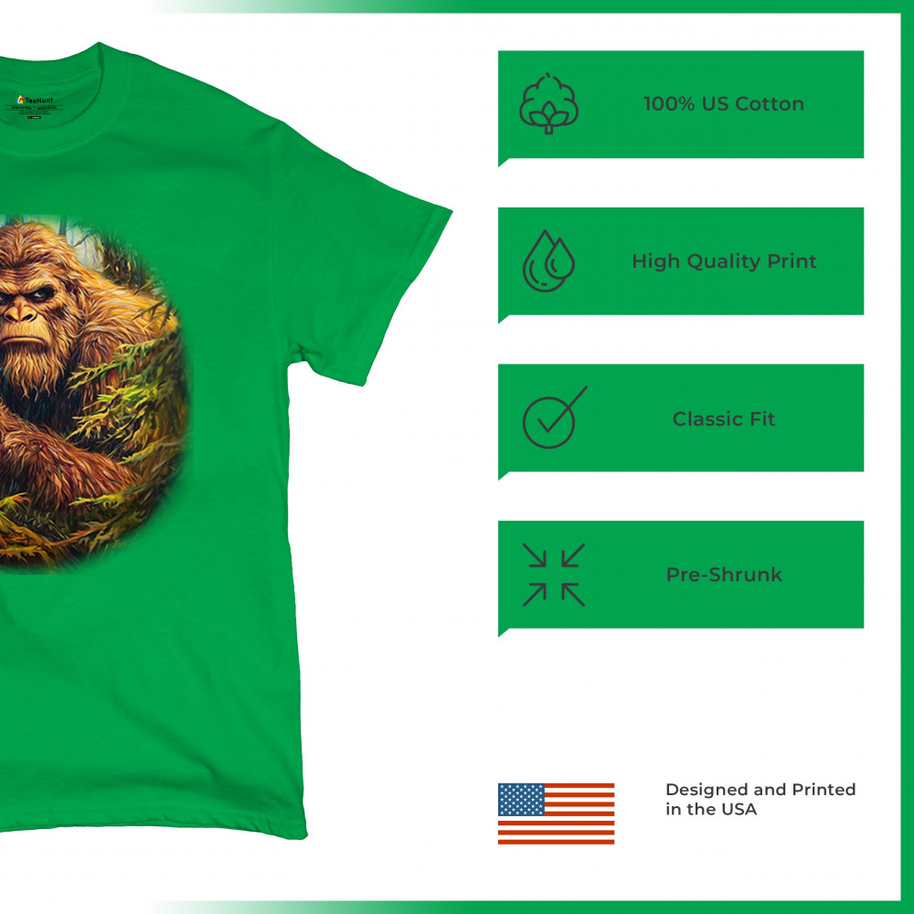 Detailed Bigfoot design with forest mystery vibes for cryptid fans, hikers, and Sasquatch lovers. Bold, outdoorsy, and perfect for adventurers.
