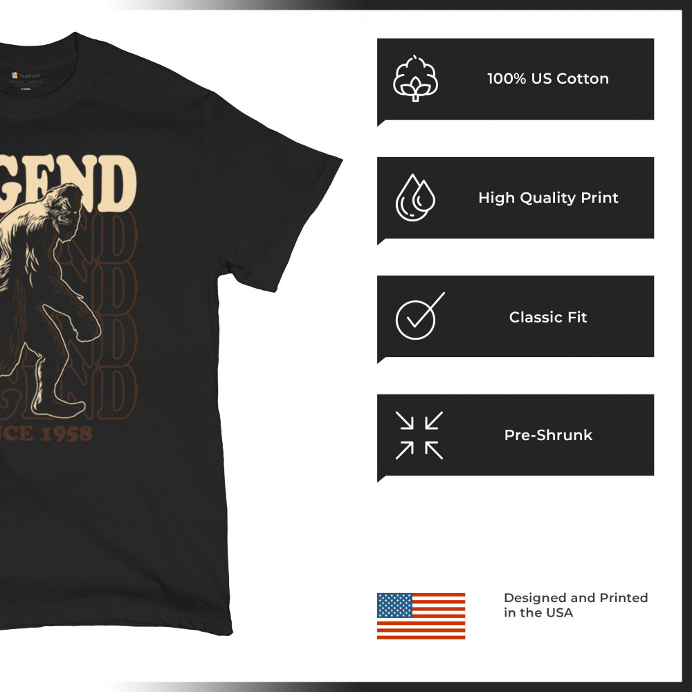 Celebrate the legend of Bigfoot since 1958 with this unique design. Perfect for fans of cryptozoology and mythical creatures.