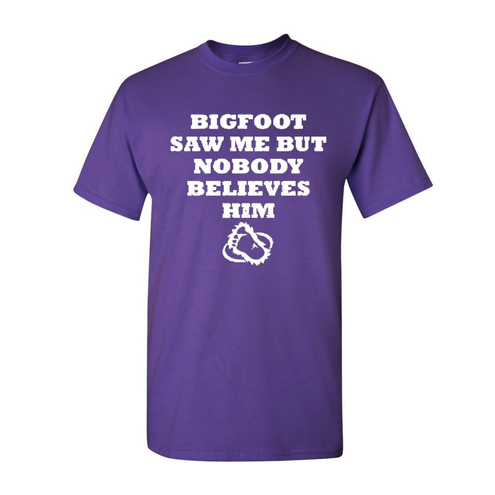 BIGFOOT SAW ME BUT NOBODY BELIEVES HIM t-shirt funny tee shirt purple