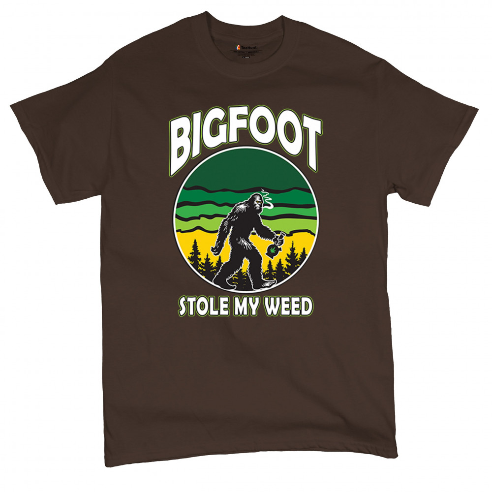 Humorous "Bigfoot Stole My Weed" design featuring Bigfoot and a cannabis leaf. Perfect for fans of Mary Jane, stoned humor, and a chill lifestyle.