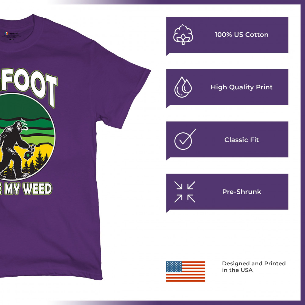 Experience the perfect blend of humor and cannabis culture with the "Bigfoot Stole My Weed" design. This playful design features a comical Bigfoot character holding a cannabis leaf, making it ideal for those who appreciate the humor and chill vibes of Mary Jane. Whether you're a pothead, enjoy stoned humor, or simply want to add some fun to your wardrobe, this design is sure to turn heads and bring smiles. Relax and embrace the trippy, laid-back lifestyle with this unique design.