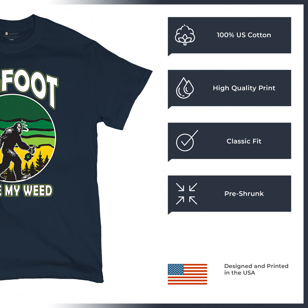 Experience the perfect blend of humor and cannabis culture with the "Bigfoot Stole My Weed" design. This playful design features a comical Bigfoot character holding a cannabis leaf, making it ideal for those who appreciate the humor and chill vibes of Mary Jane. Whether you're a pothead, enjoy stoned humor, or simply want to add some fun to your wardrobe, this design is sure to turn heads and bring smiles. Relax and embrace the trippy, laid-back lifestyle with this unique design.