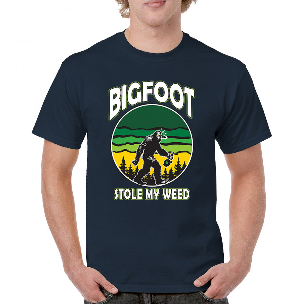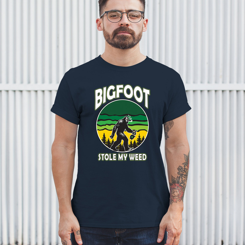 Humorous "Bigfoot Stole My Weed" design featuring Bigfoot and a cannabis leaf. Perfect for fans of Mary Jane, stoned humor, and a chill lifestyle.