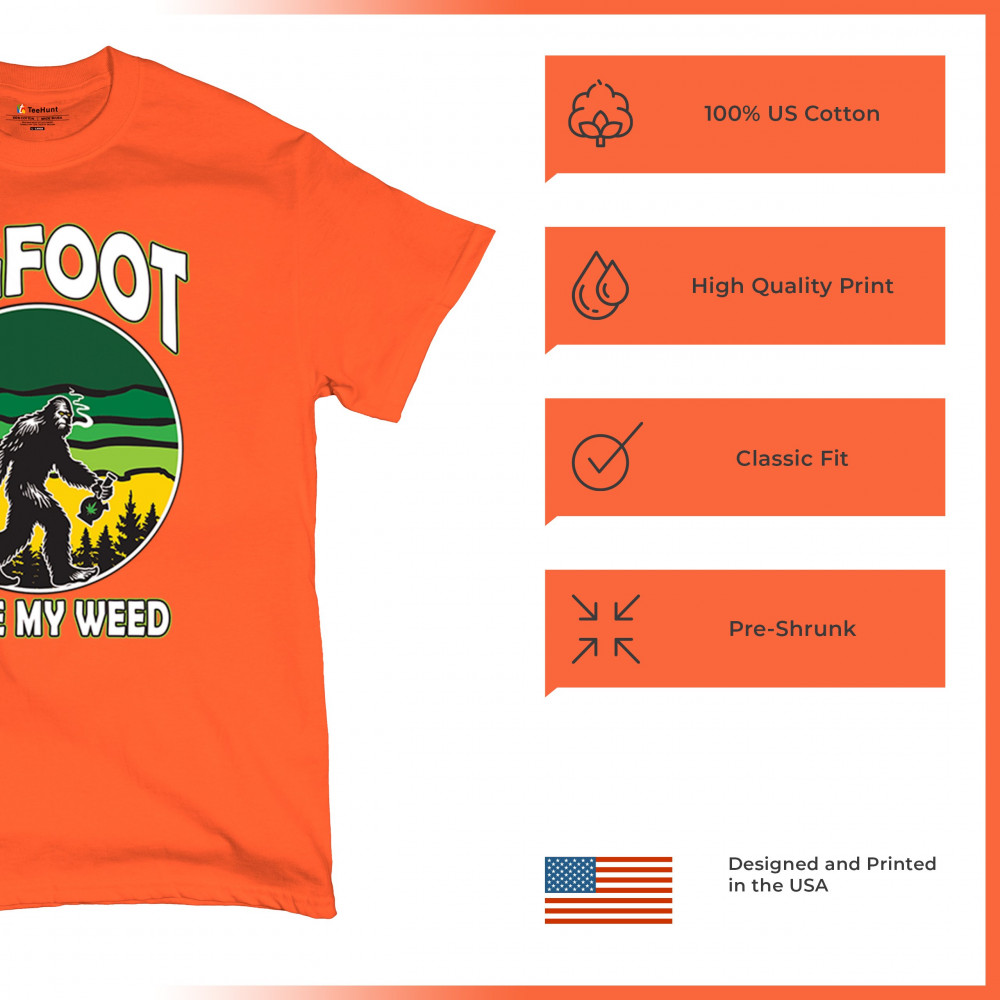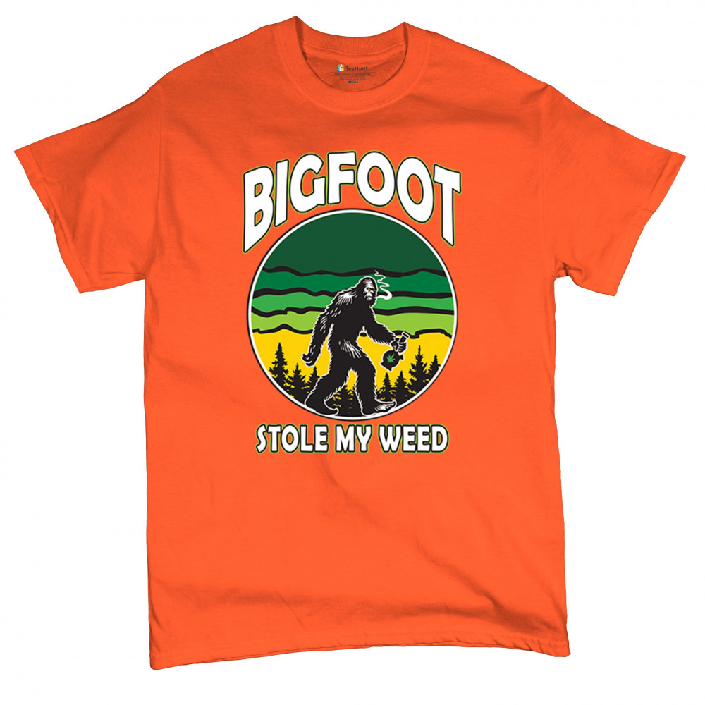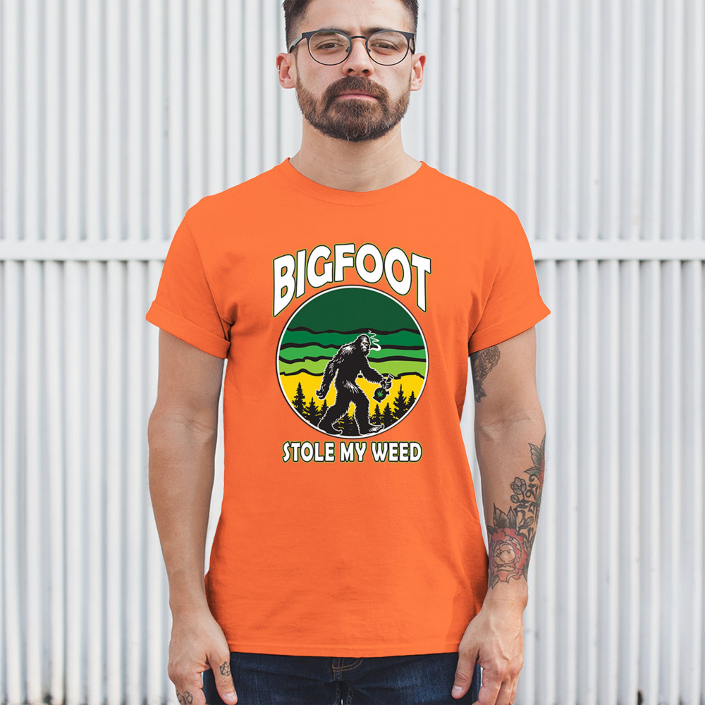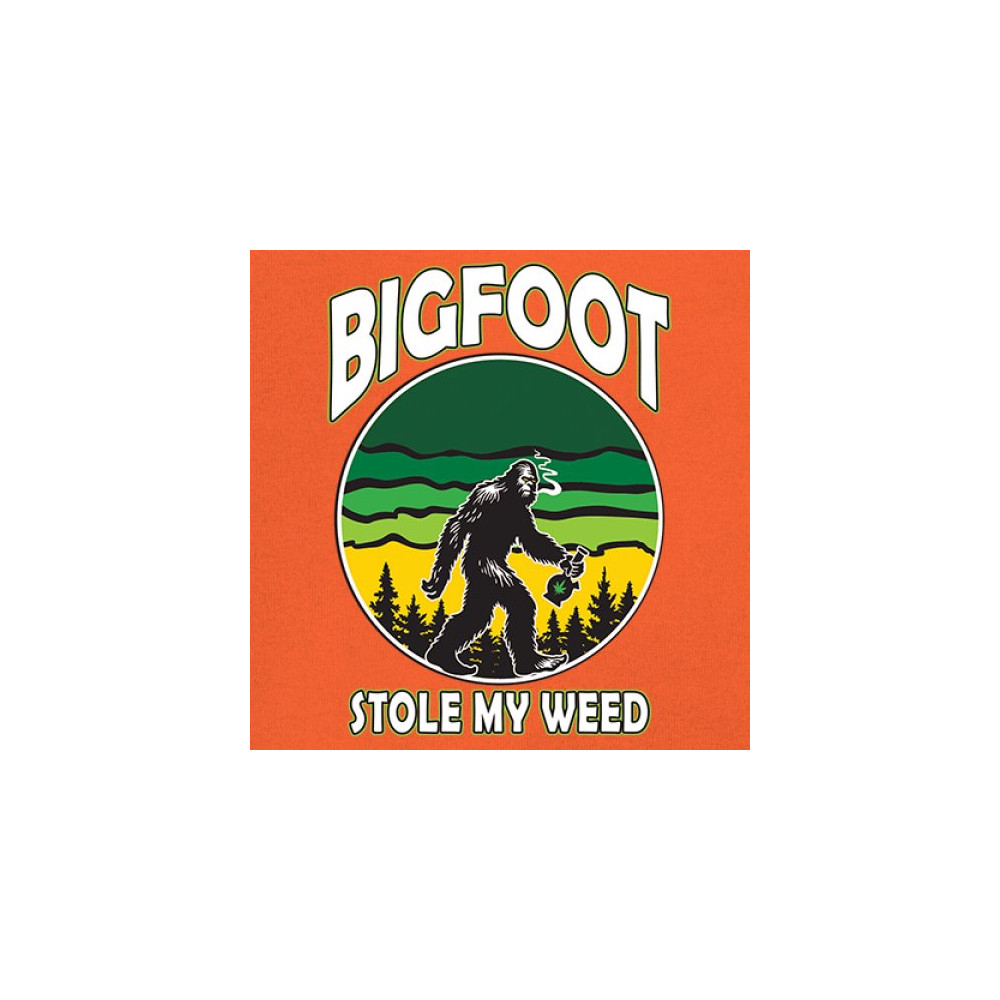 Humorous "Bigfoot Stole My Weed" design featuring Bigfoot and a cannabis leaf. Perfect for fans of Mary Jane, stoned humor, and a chill lifestyle.