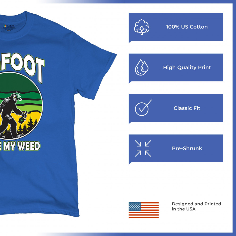 Experience the perfect blend of humor and cannabis culture with the "Bigfoot Stole My Weed" design. This playful design features a comical Bigfoot character holding a cannabis leaf, making it ideal for those who appreciate the humor and chill vibes of Mary Jane. Whether you're a pothead, enjoy stoned humor, or simply want to add some fun to your wardrobe, this design is sure to turn heads and bring smiles. Relax and embrace the trippy, laid-back lifestyle with this unique design.