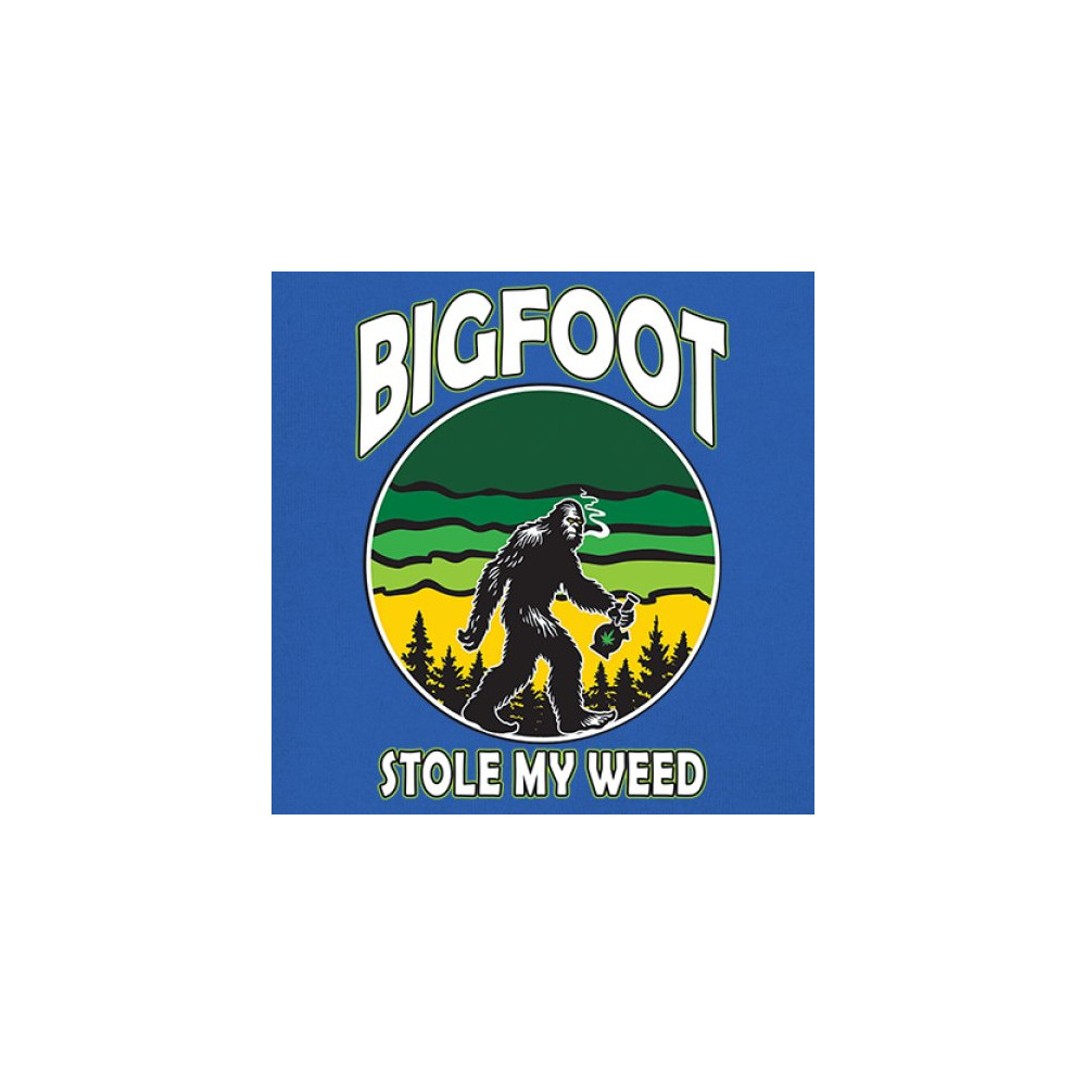 Humorous "Bigfoot Stole My Weed" design featuring Bigfoot and a cannabis leaf. Perfect for fans of Mary Jane, stoned humor, and a chill lifestyle.