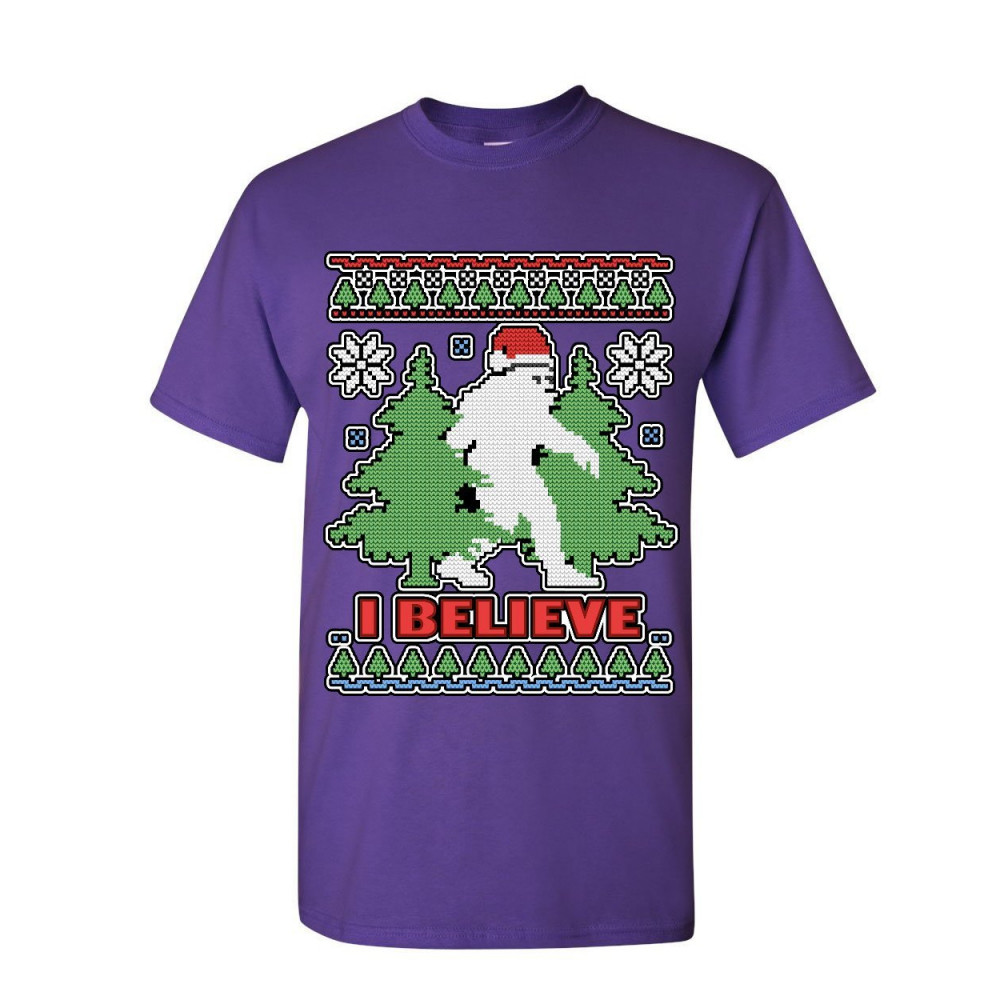 I BELIEVE bigfoot ugly sweatshirt t-shirt funny christmas yeti mens tee shirt purple