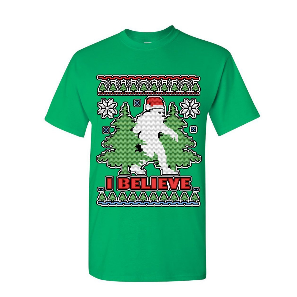 I BELIEVE bigfoot ugly sweatshirt t-shirt funny christmas yeti mens tee shirt green