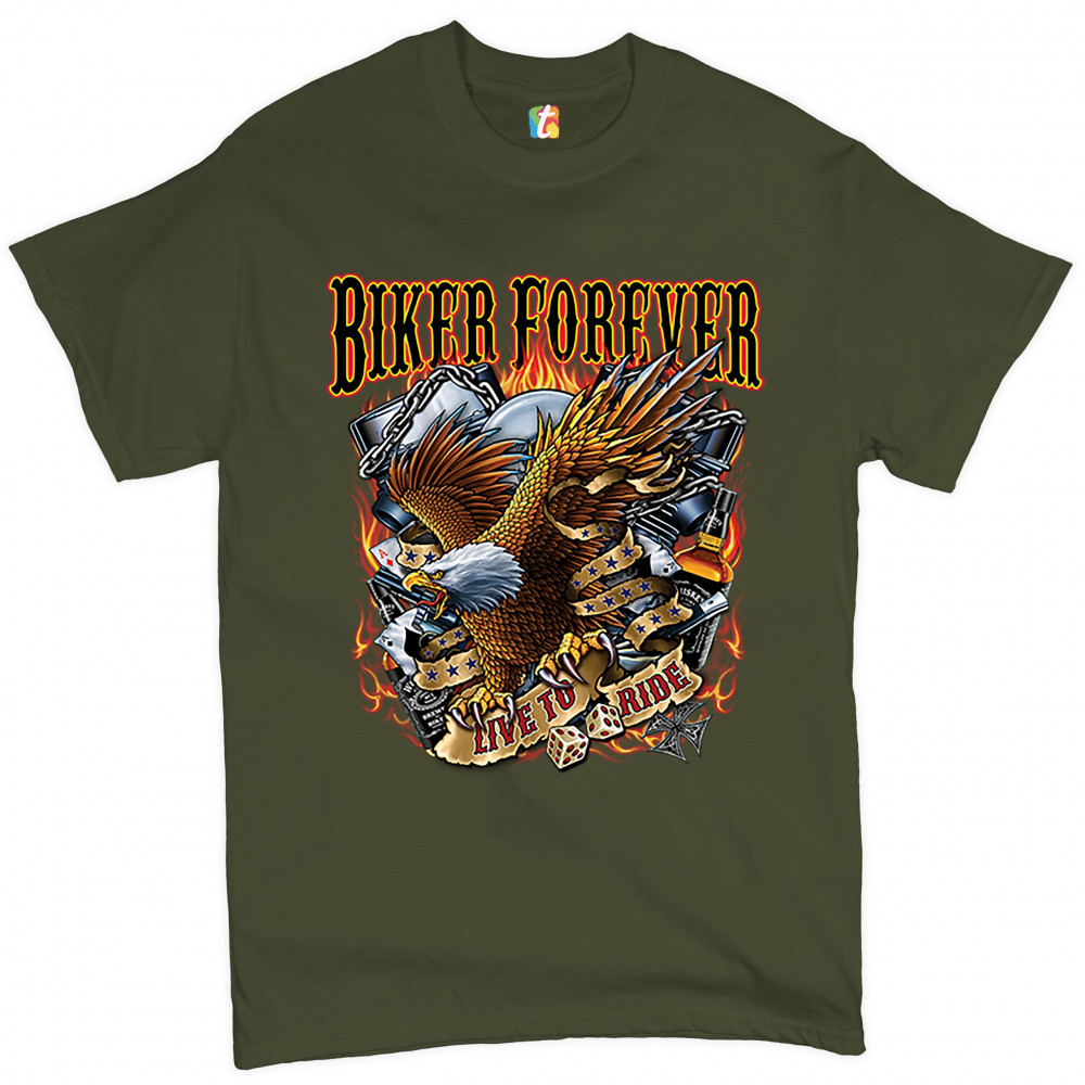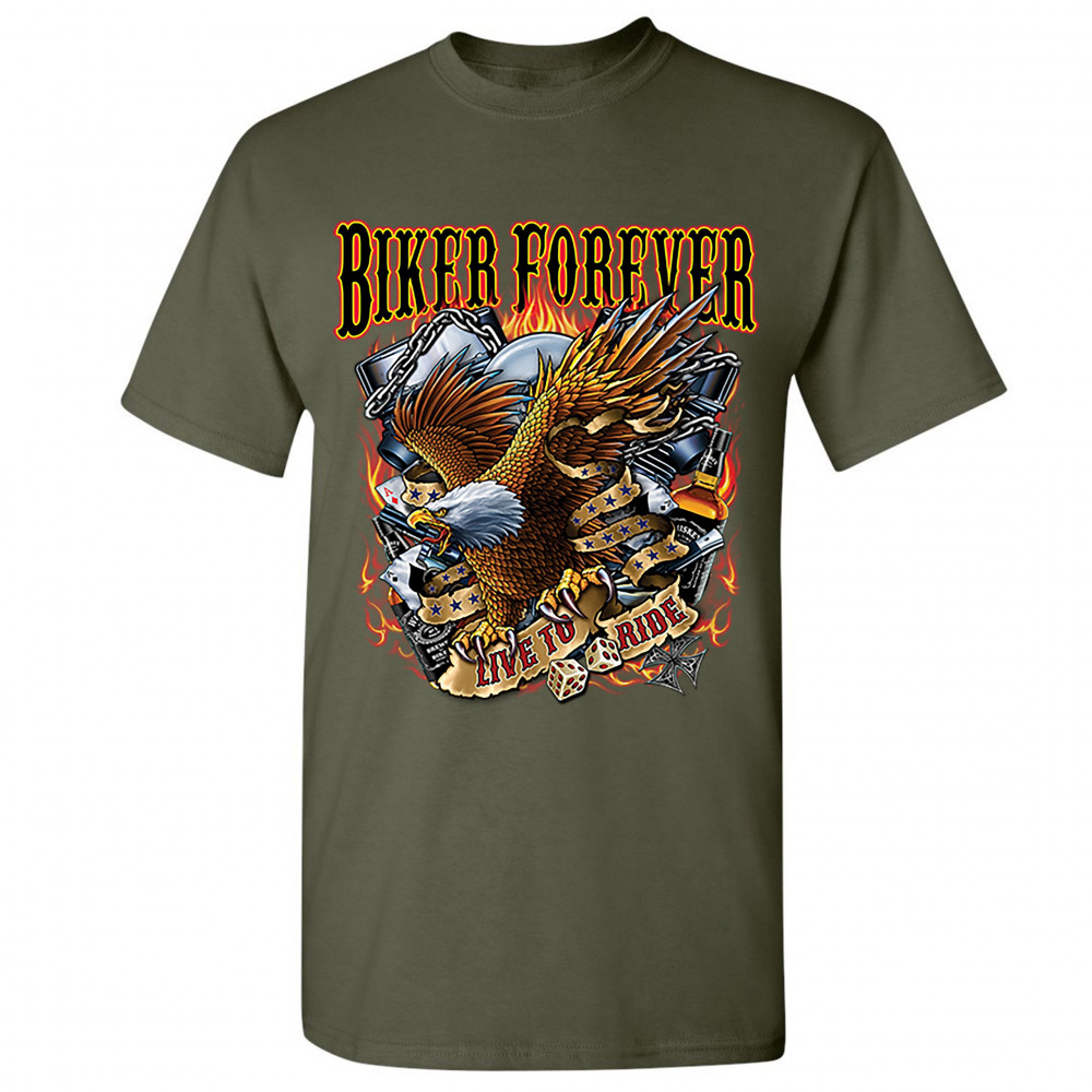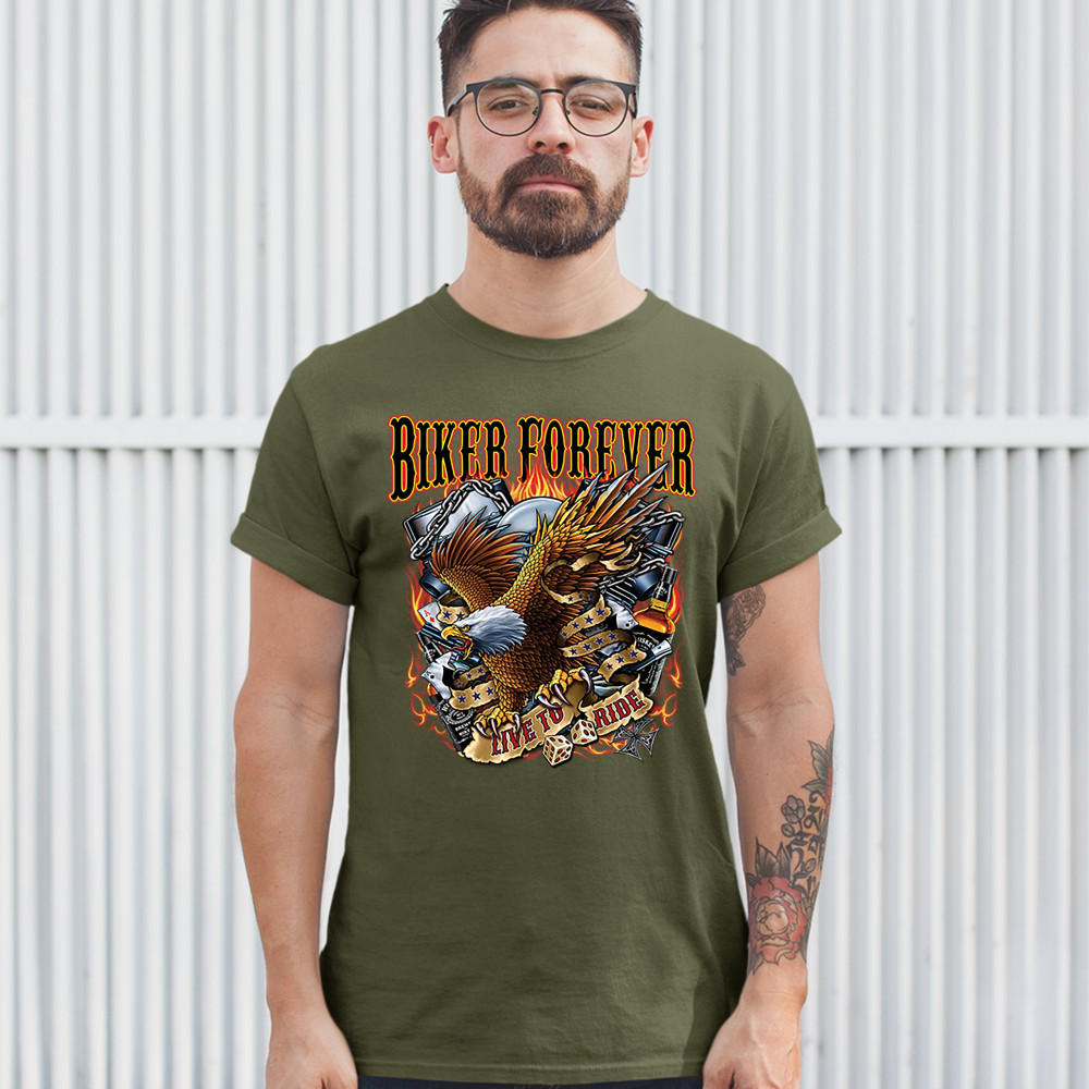 BIKER FOREVER LIVE TO RIDE t-shirt american eagle motorcycle men's tee military green