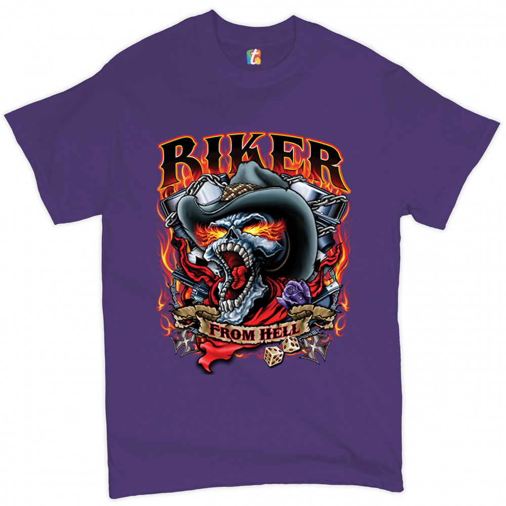 BIKER FROM HELL t-shirt ride or die skeleton outlaw route 66 men's tee purple
