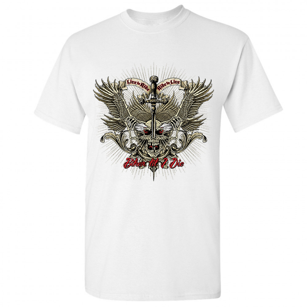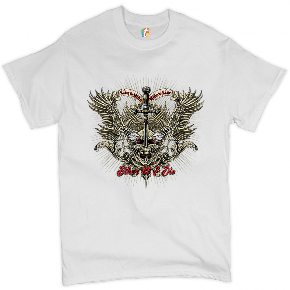 BIKER TIL I DIE t-shirt live to ride biker forever skull face men's tee white