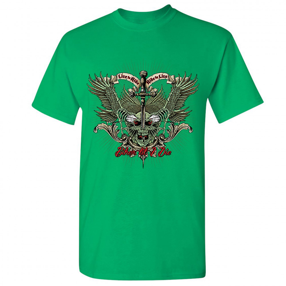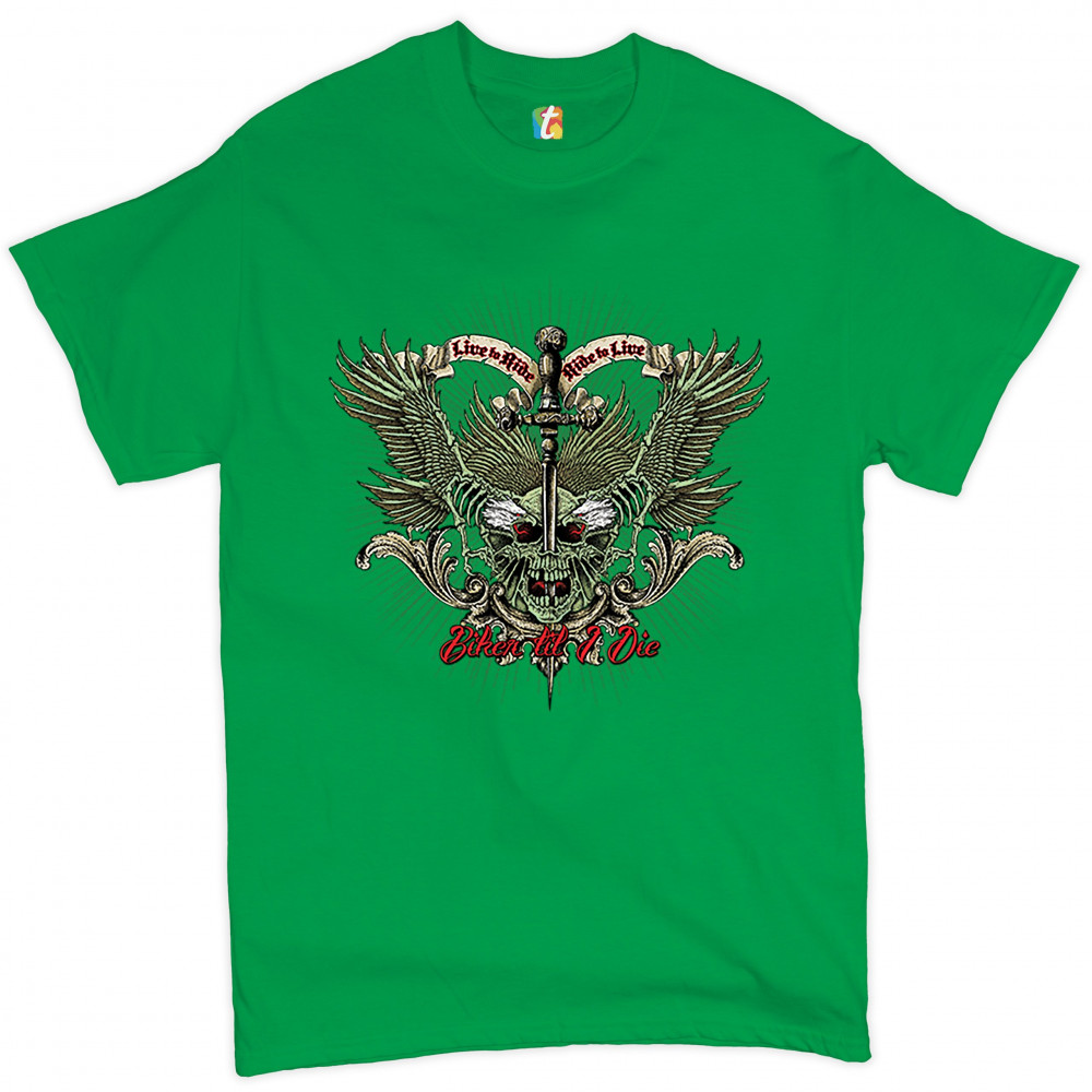 BIKER TIL I DIE t-shirt live to ride biker forever skull face men's tee green