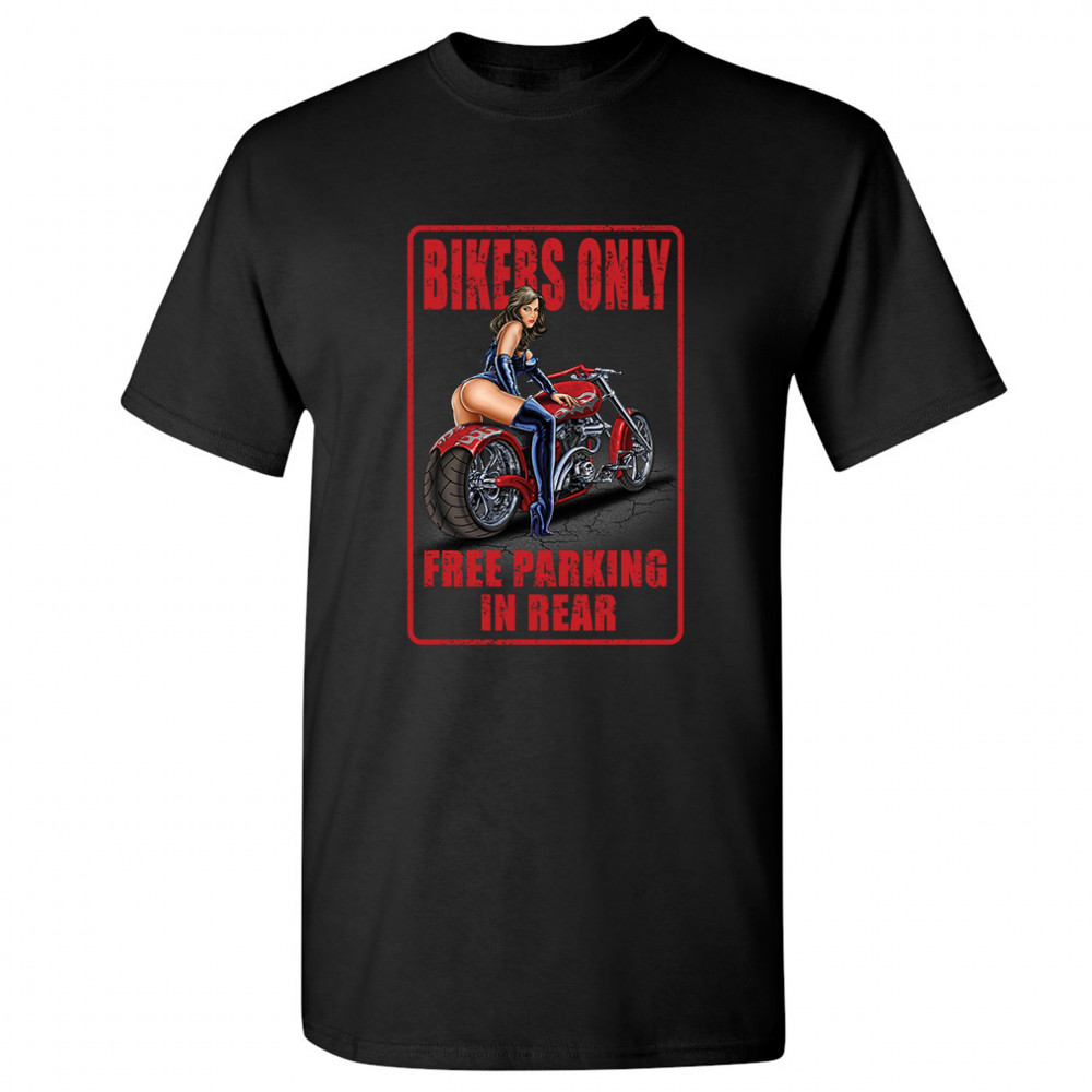 BIKERS ONLY FREE PARKING IN REAR t-shirt funny pin-up biker chick men's tee black