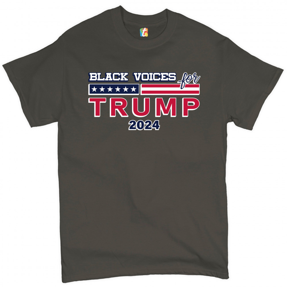 BLACK VOICES FOR TRUMP t-shirt donald trump 2024 stars and stripes men's tee charcoal
