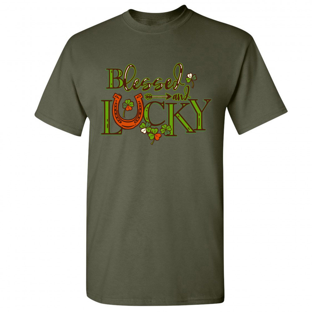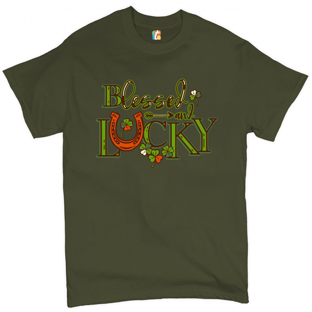 BLESSED AND LUCKY t-shirt st. patrick's day clover irish malarkey men's tee military green