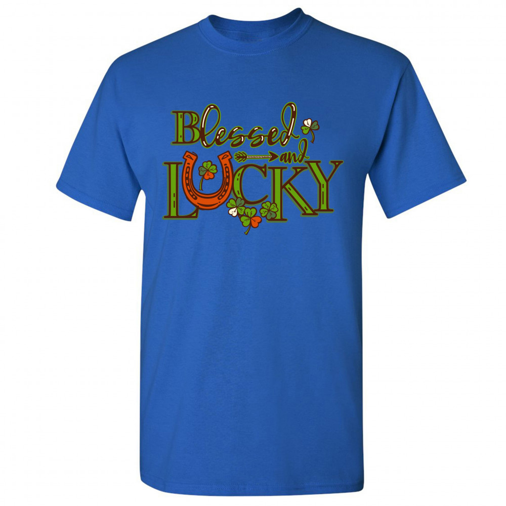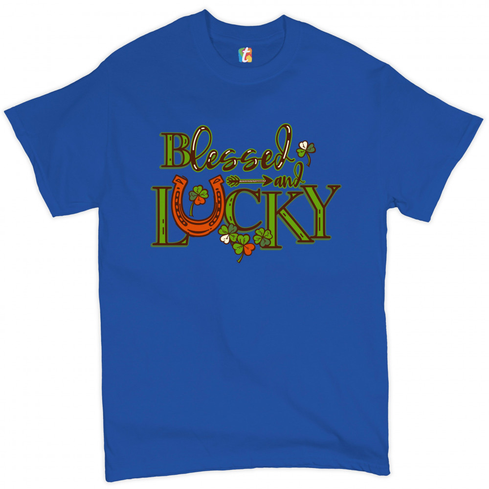 BLESSED AND LUCKY t-shirt st. patrick's day clover irish malarkey men's tee royal blue