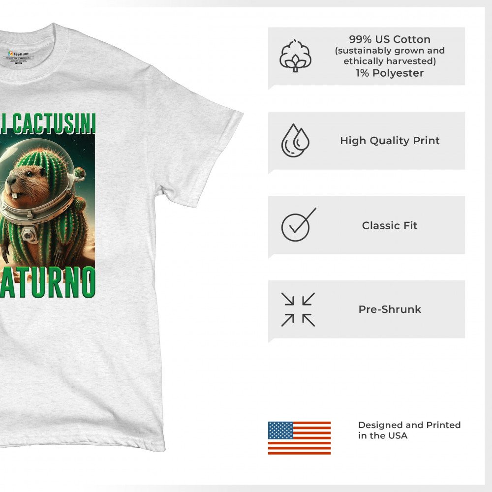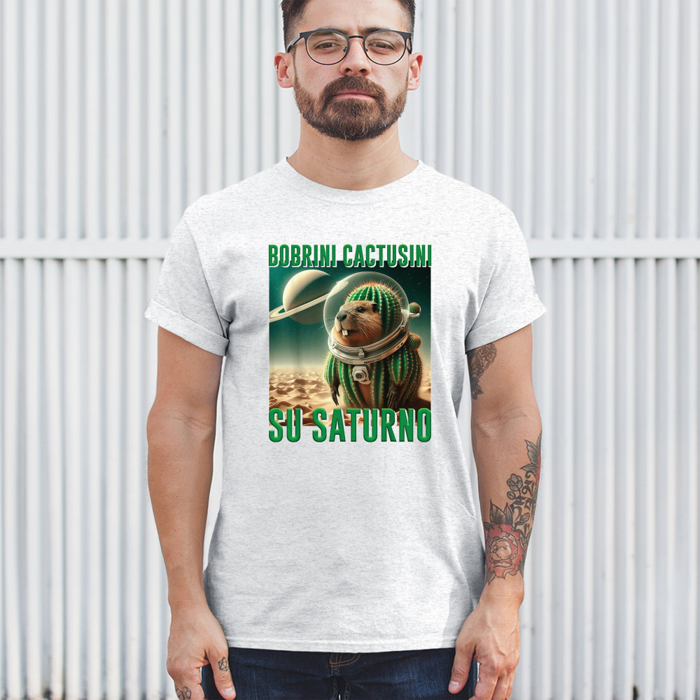 Blast off with Bobrini Cactusini Su Saturno—a cactus-beaver astronaut floating in pure brainrot. This cursed design blends space meme aesthetics, weirdcore fashion, viral Gen Z humor, and surreal animal mashups. It’s the ultimate tee for lovers of ironic internet chaos and absurdist TikTok trends.