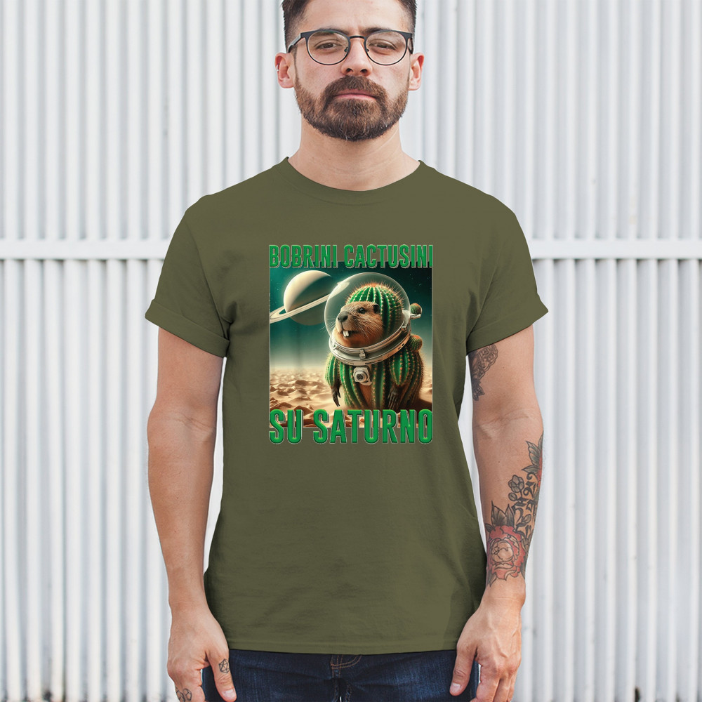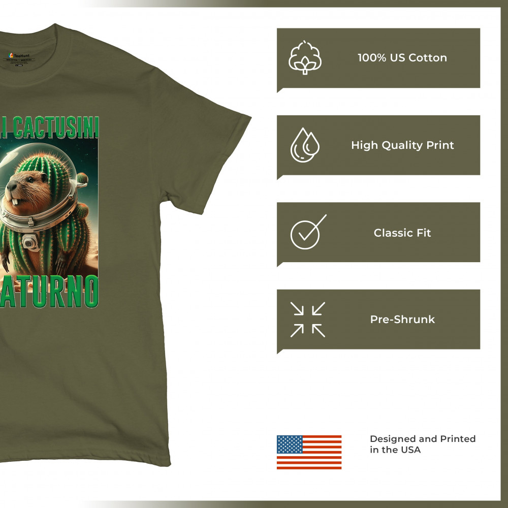 Blast off with Bobrini Cactusini Su Saturno—a cactus-beaver astronaut floating in pure brainrot. This cursed design blends space meme aesthetics, weirdcore fashion, viral Gen Z humor, and surreal animal mashups. It’s the ultimate tee for lovers of ironic internet chaos and absurdist TikTok trends.