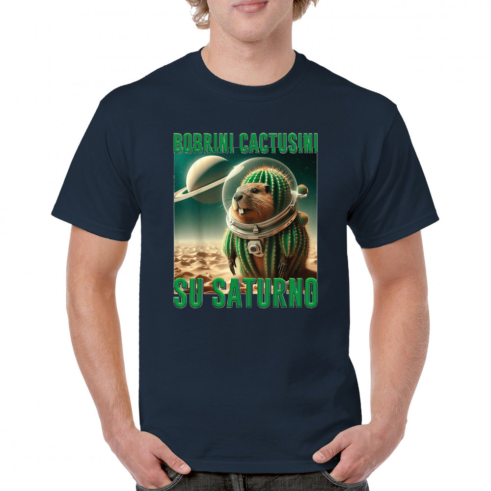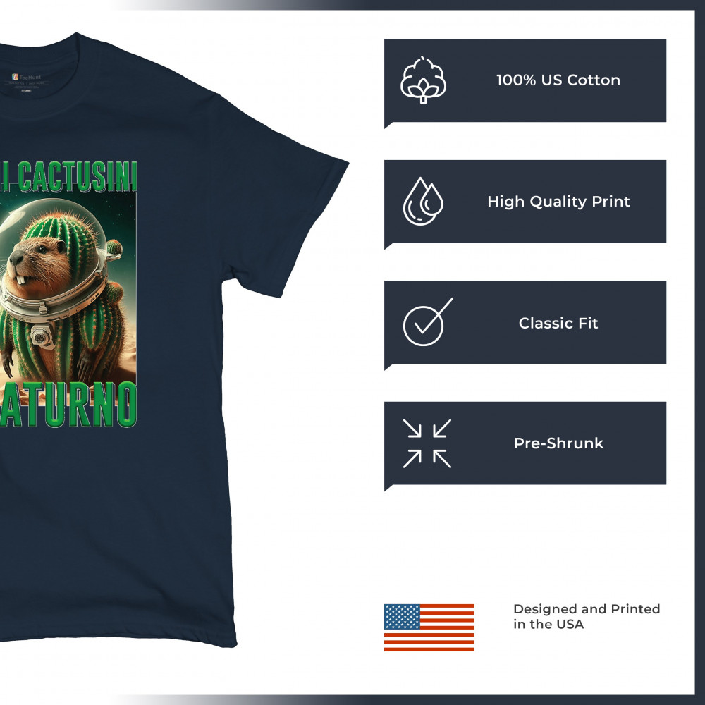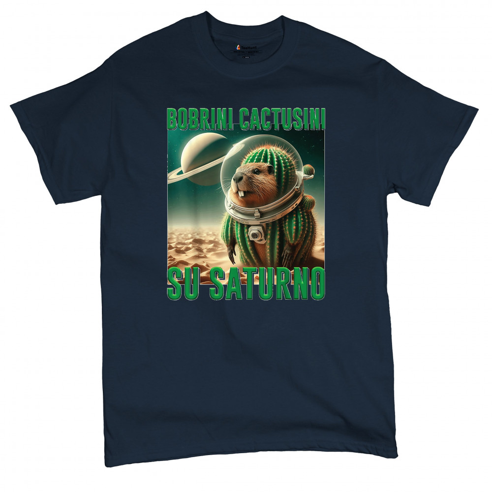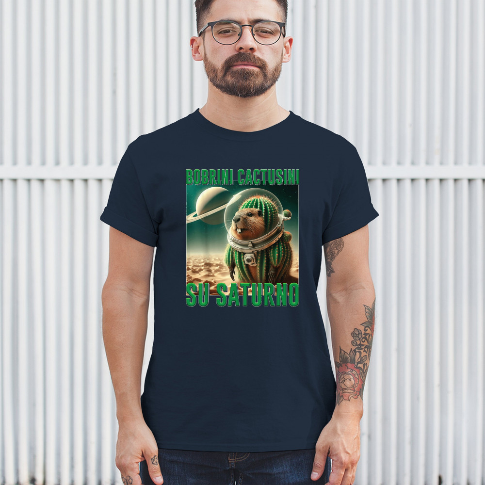 Blast off with Bobrini Cactusini Su Saturno—a cactus-beaver astronaut floating in pure brainrot. This cursed design blends space meme aesthetics, weirdcore fashion, viral Gen Z humor, and surreal animal mashups. It’s the ultimate tee for lovers of ironic internet chaos and absurdist TikTok trends.