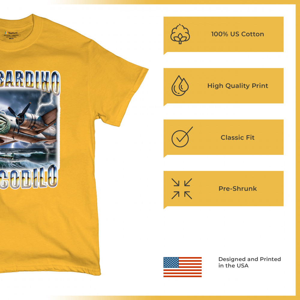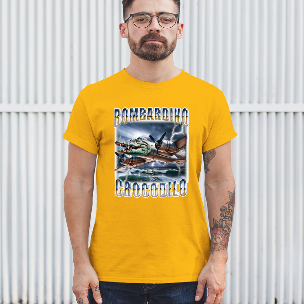 Bombardino Crocodilo is meme fashion with teeth. Featuring a crocodile-faced bomber jet flying through internet chaos, this Italian Brainrot masterpiece blends weirdcore visuals, cursed meme logic, and Gen Z humor. Perfect for fans of surreal fashion, viral absurdity, and TikTok-driven ironic style.