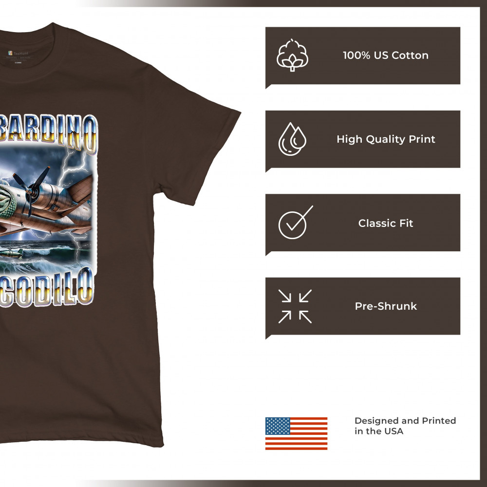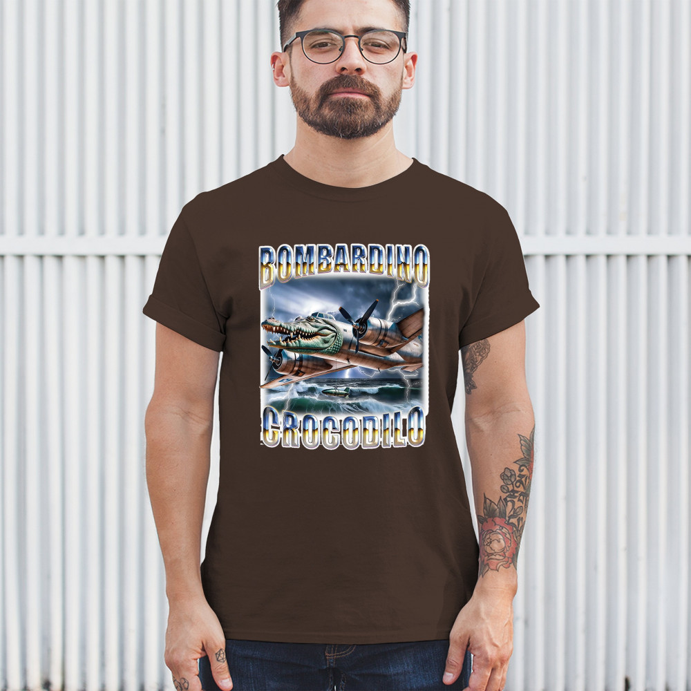 Bombardino Crocodilo is meme fashion with teeth. Featuring a crocodile-faced bomber jet flying through internet chaos, this Italian Brainrot masterpiece blends weirdcore visuals, cursed meme logic, and Gen Z humor. Perfect for fans of surreal fashion, viral absurdity, and TikTok-driven ironic style.