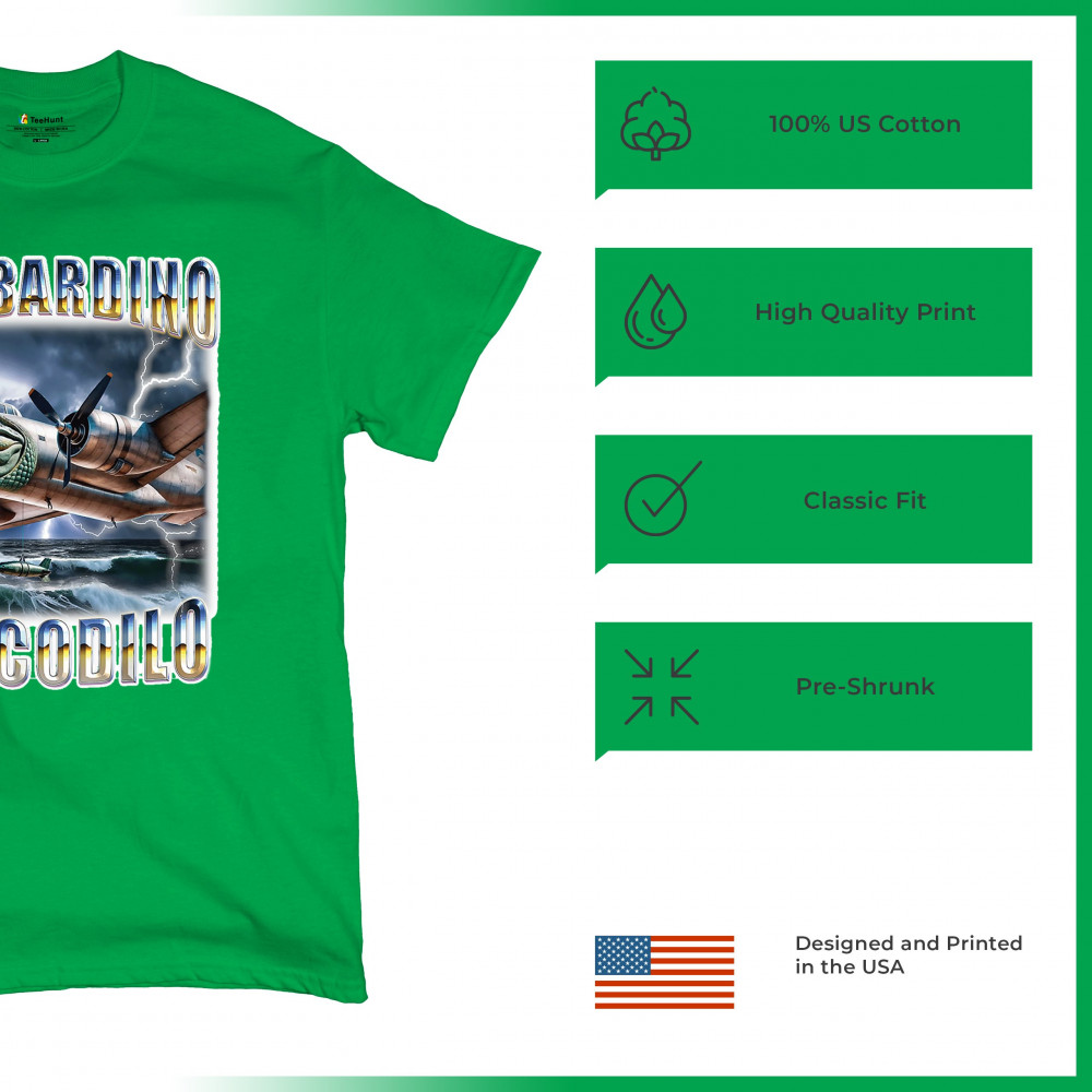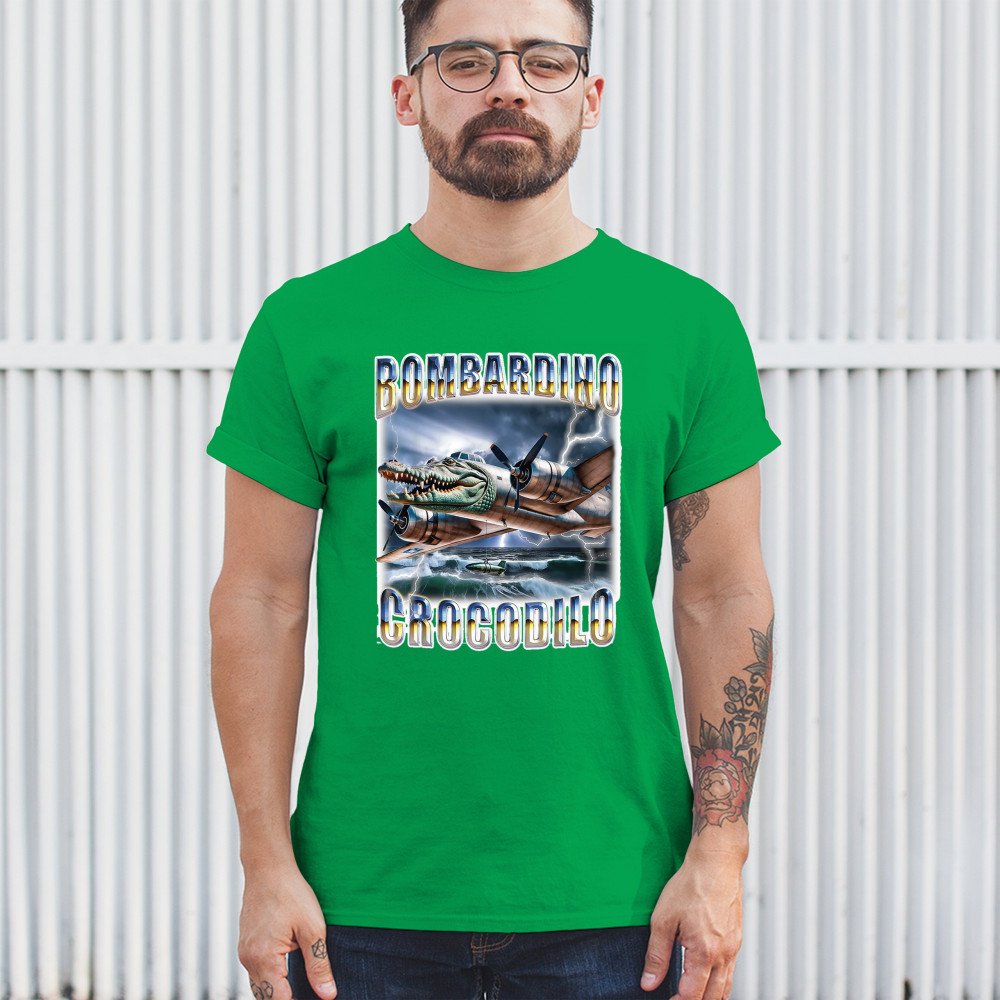 Bombardino Crocodilo is meme fashion with teeth. Featuring a crocodile-faced bomber jet flying through internet chaos, this Italian Brainrot masterpiece blends weirdcore visuals, cursed meme logic, and Gen Z humor. Perfect for fans of surreal fashion, viral absurdity, and TikTok-driven ironic style.