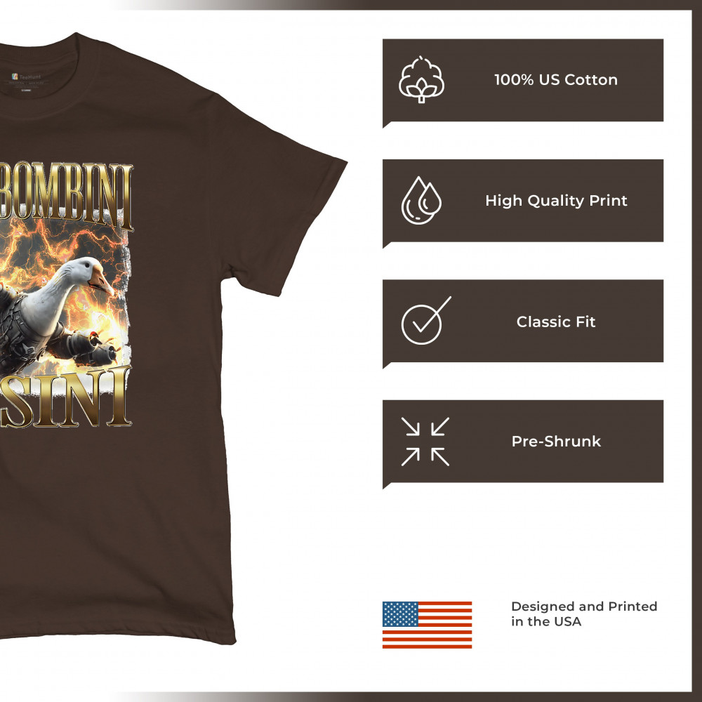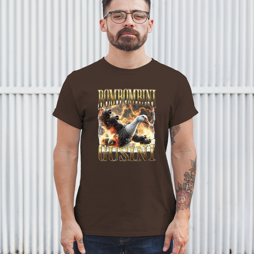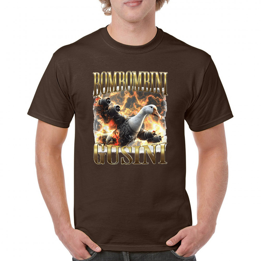 Bombombini Gusini is meme chaos at Mach speed. Featuring a mechanized goose powered by pure Italian Brainrot energy, this design blends cursed-core humor, Gen Z absurdity, ironic fashion, and weirdcore visuals. Perfect for animal meme fans, TikTok-core addicts, and anyone whose humor is completely unhinged.
