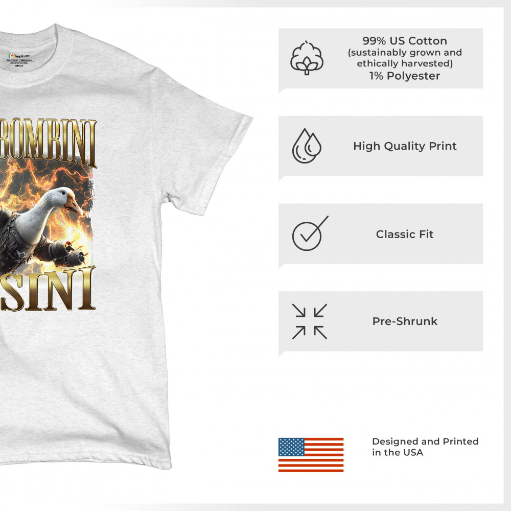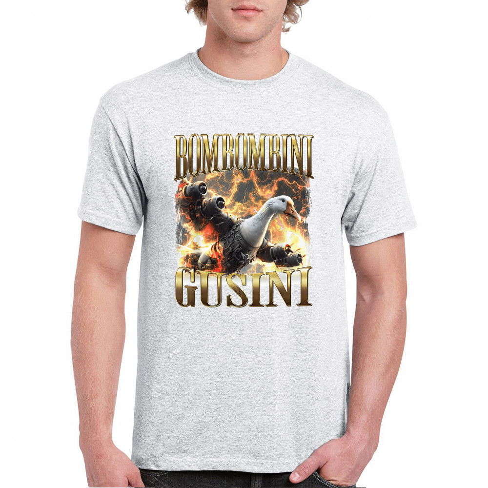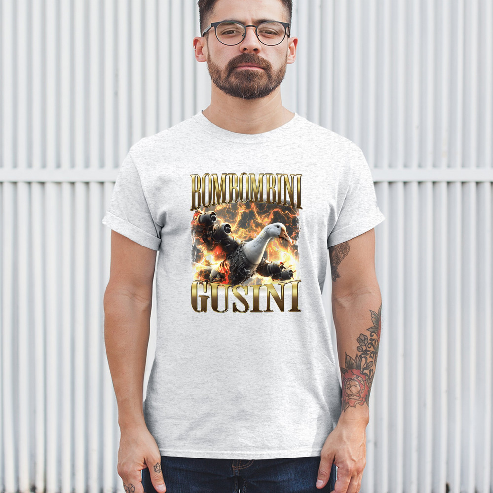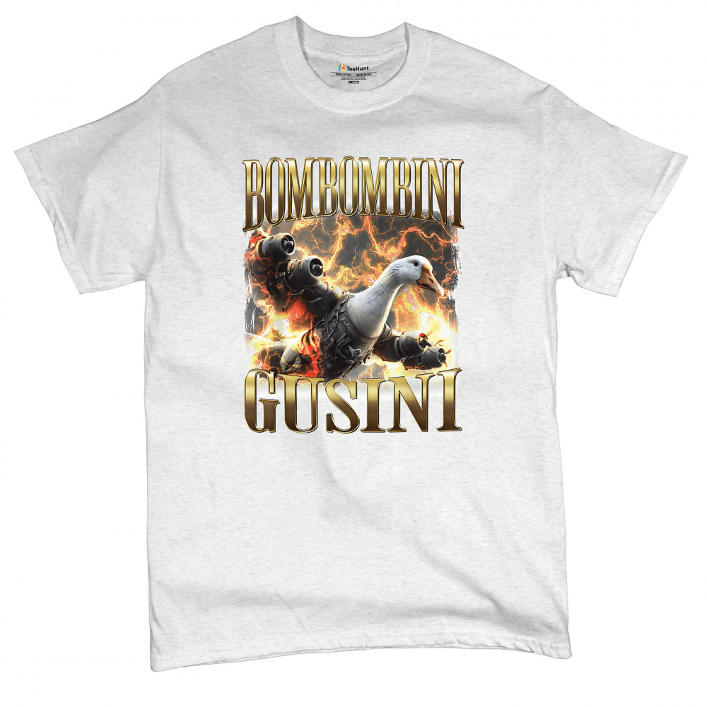 Bombombini Gusini is meme chaos at Mach speed. Featuring a mechanized goose powered by pure Italian Brainrot energy, this design blends cursed-core humor, Gen Z absurdity, ironic fashion, and weirdcore visuals. Perfect for animal meme fans, TikTok-core addicts, and anyone whose humor is completely unhinged.