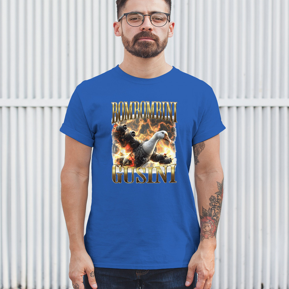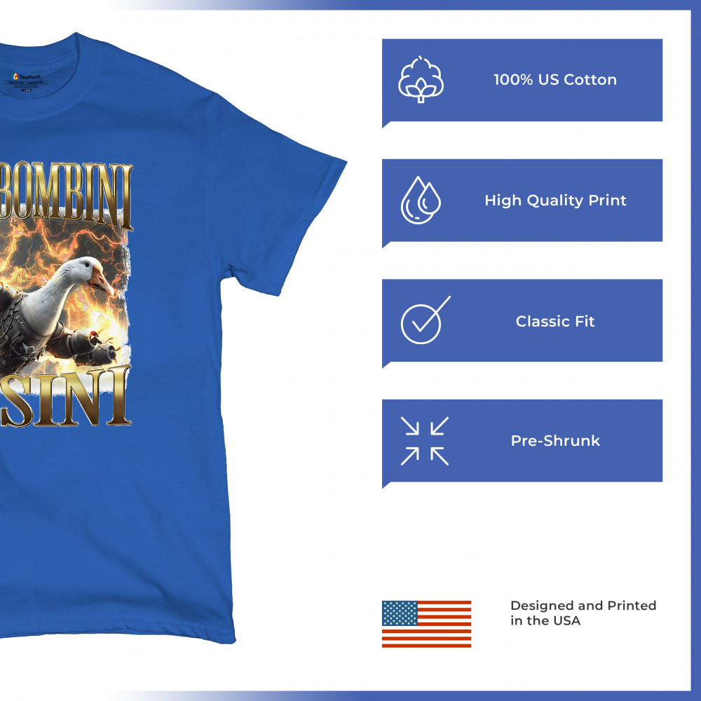 Bombombini Gusini is meme chaos at Mach speed. Featuring a mechanized goose powered by pure Italian Brainrot energy, this design blends cursed-core humor, Gen Z absurdity, ironic fashion, and weirdcore visuals. Perfect for animal meme fans, TikTok-core addicts, and anyone whose humor is completely unhinged.