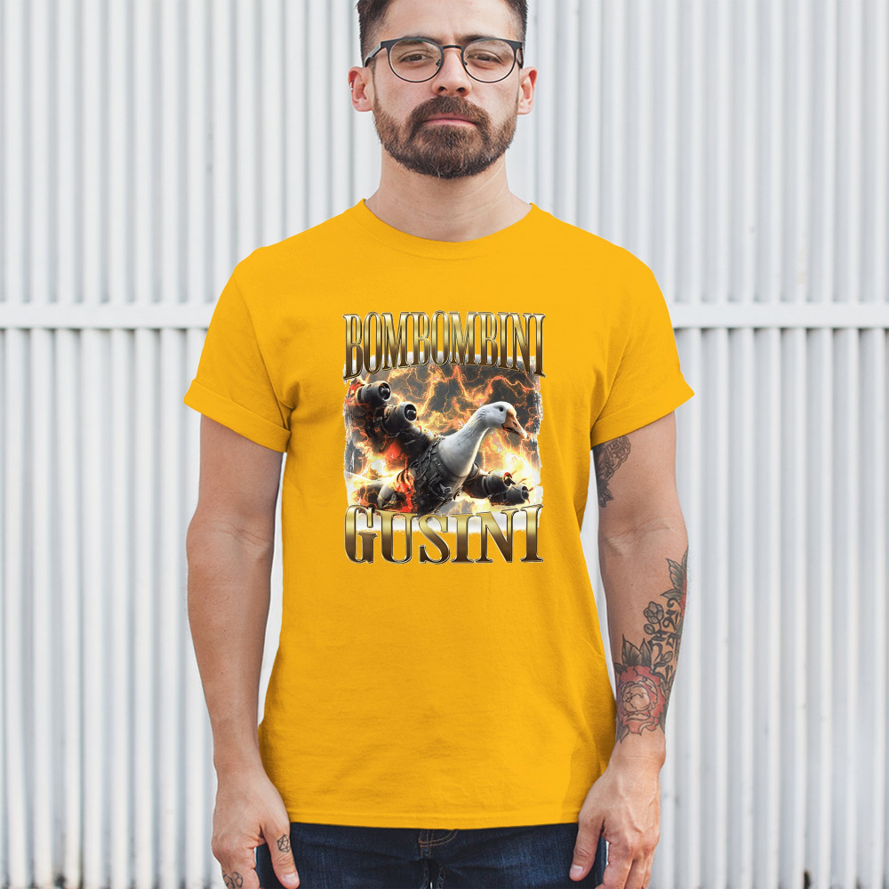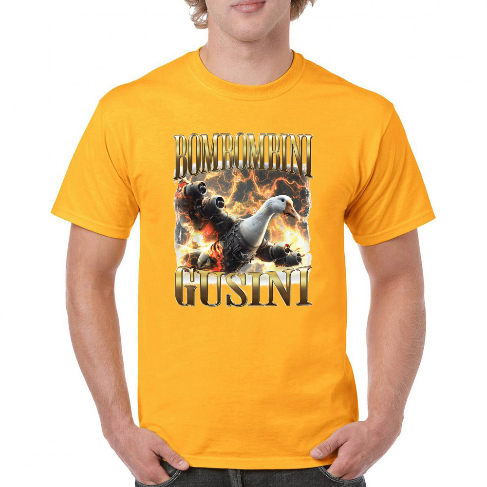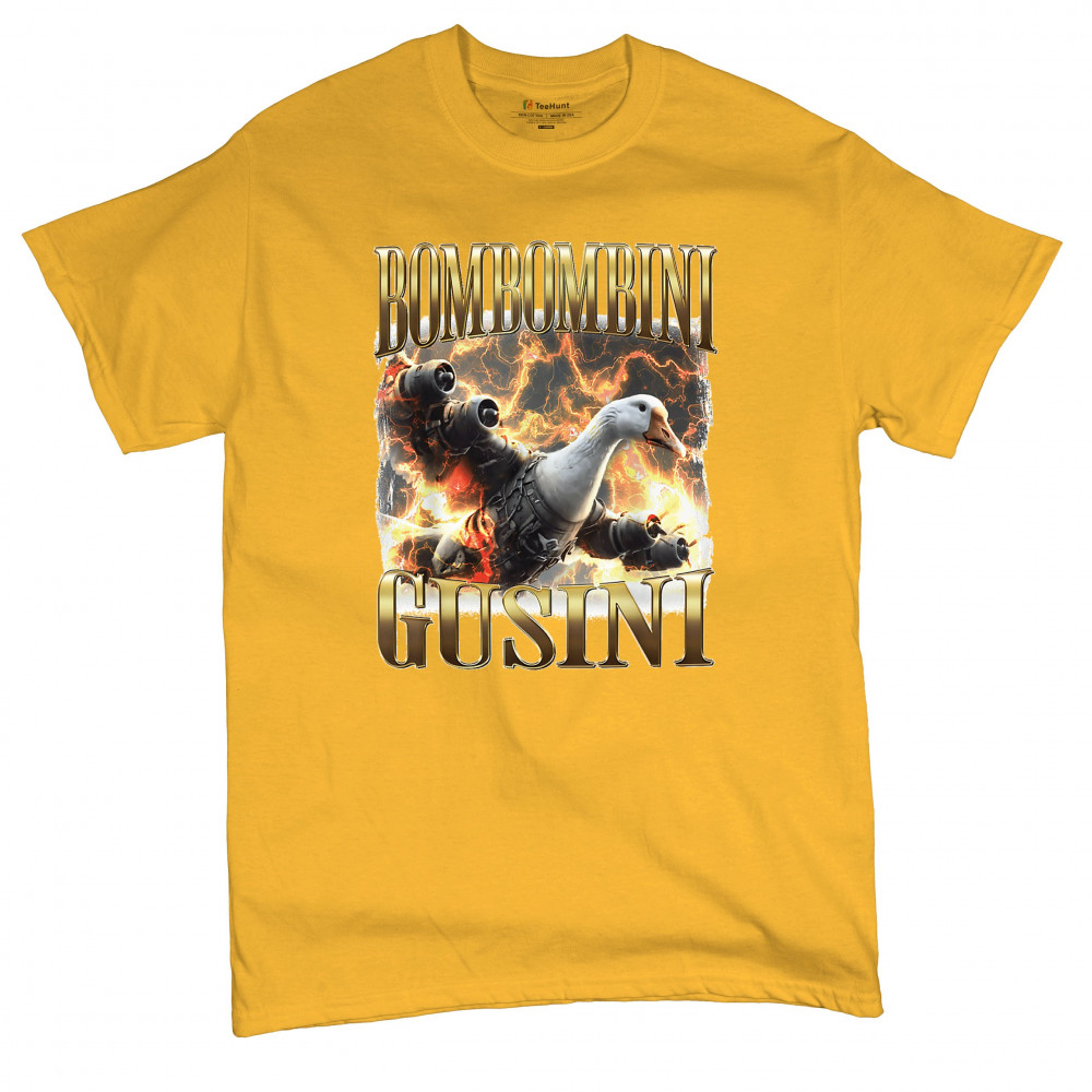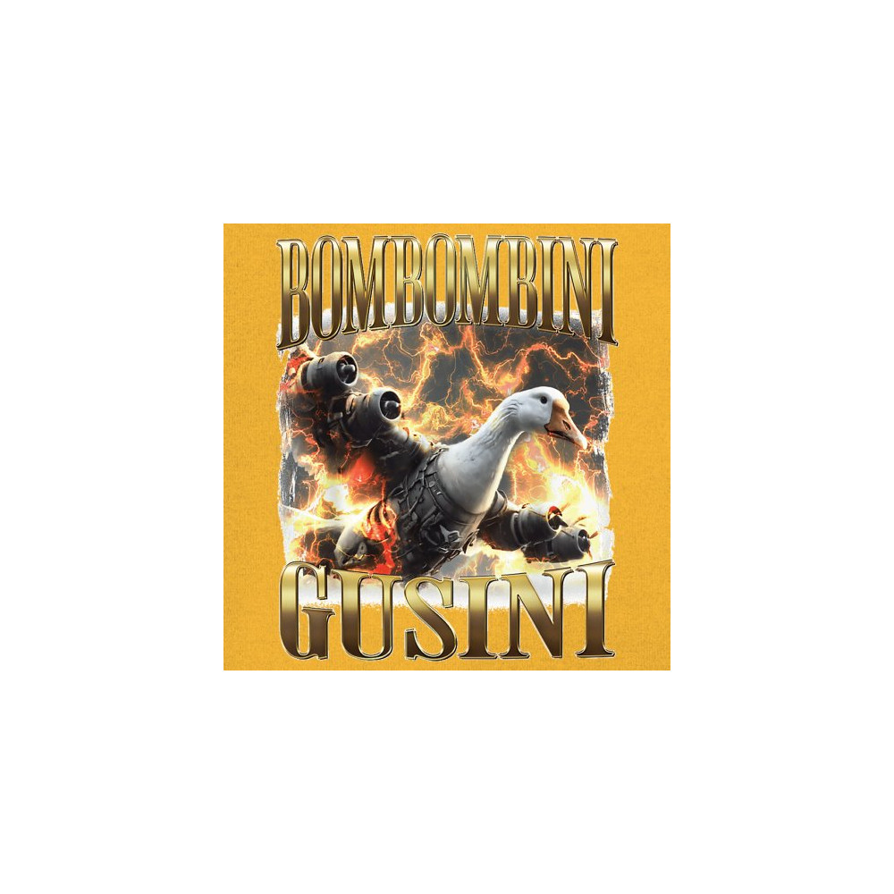 Bombombini Gusini is meme chaos at Mach speed. Featuring a mechanized goose powered by pure Italian Brainrot energy, this design blends cursed-core humor, Gen Z absurdity, ironic fashion, and weirdcore visuals. Perfect for animal meme fans, TikTok-core addicts, and anyone whose humor is completely unhinged.