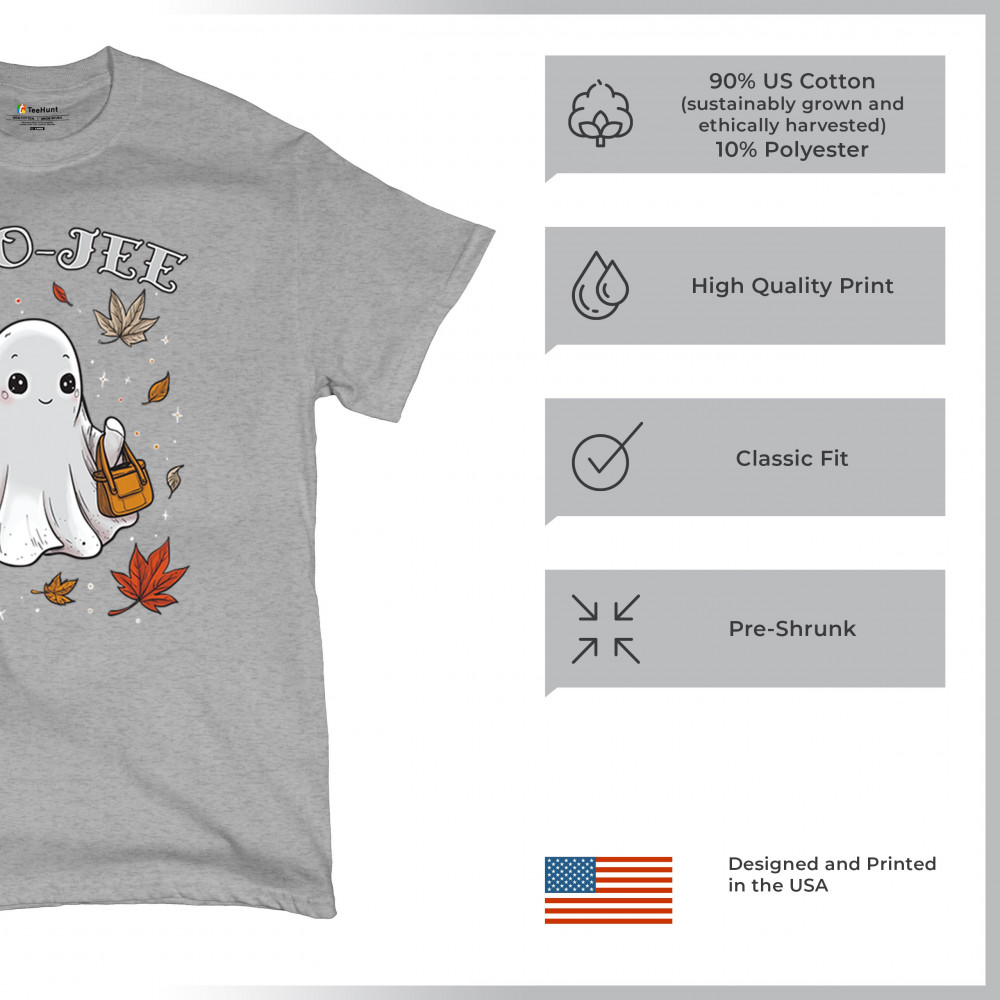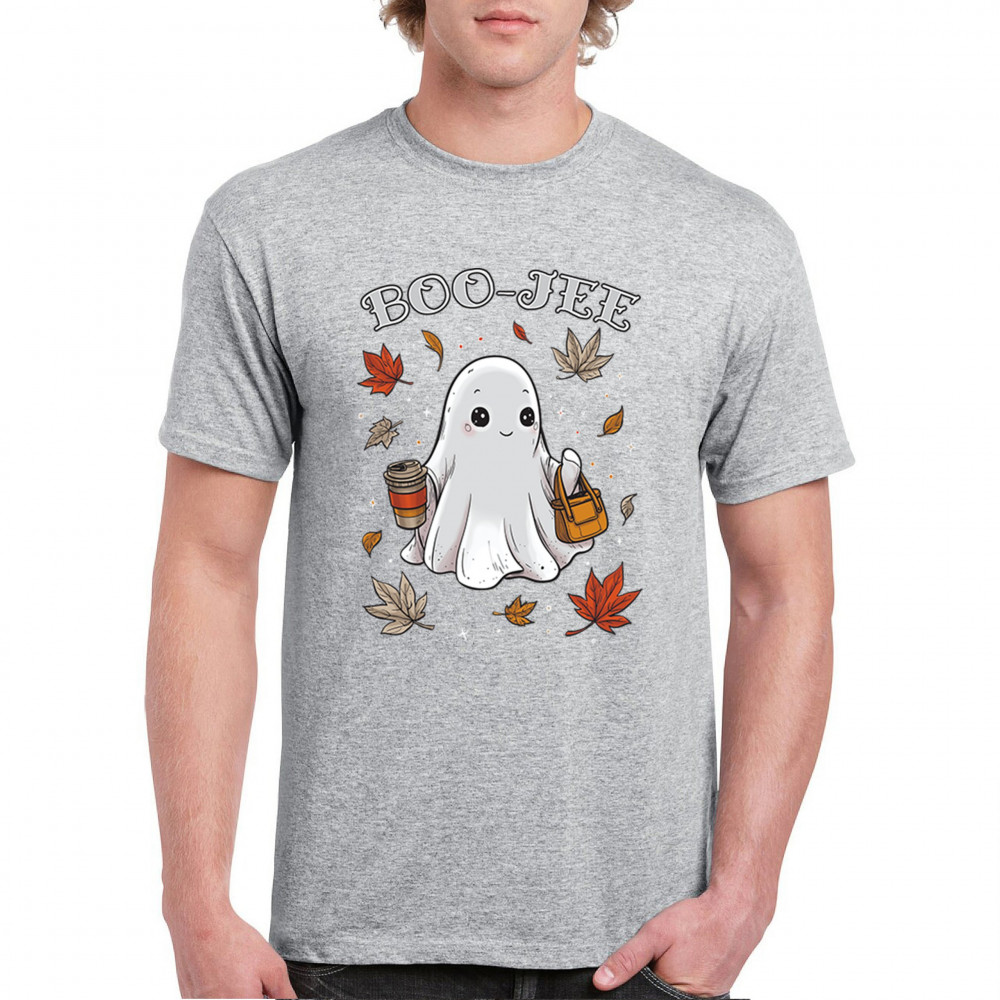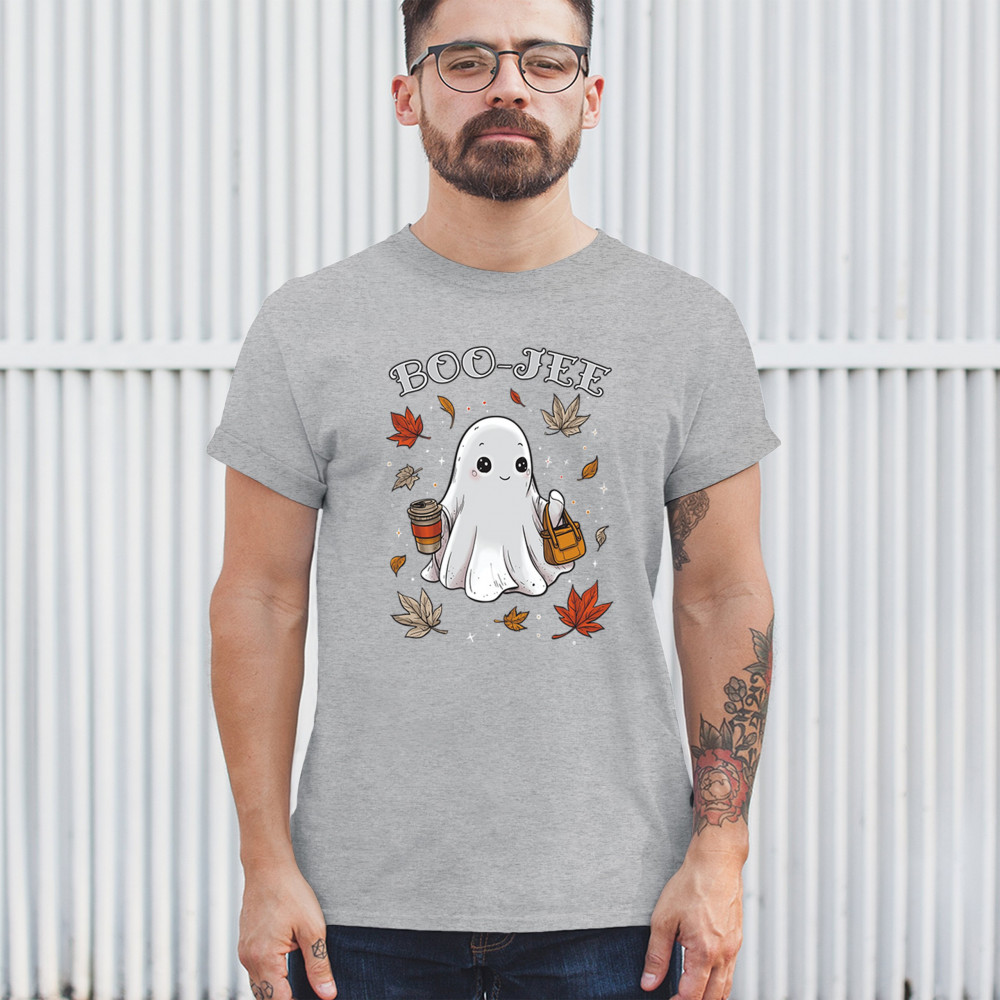 Get in the Halloween spirit with this playful Boo-Jee cute ghost design featuring a funny pumpkin head, cozy candy bucket, and spooky-scary charm. Great for trick or treat fun, haunted house parties, autumn leaves strolls, or sipping coffee on a crisp fall night, this shirt blends festive vibes with seasonal style. Perfect for anyone who loves Halloween fun and cozy fall flair.