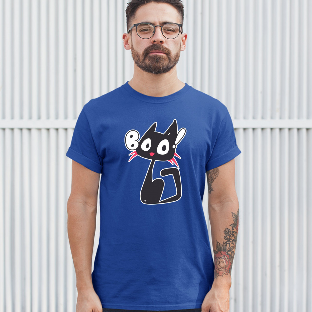 BOO KITTEN t-shirt happy halloween trick-or-treating funny cat men's tee royal blue