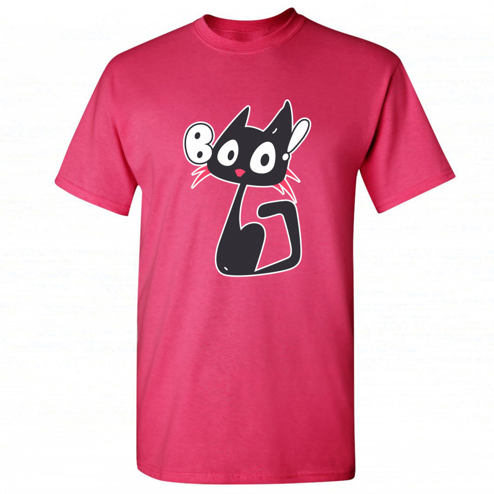 BOO KITTEN t-shirt happy halloween trick-or-treating funny cat men's tee hot pink