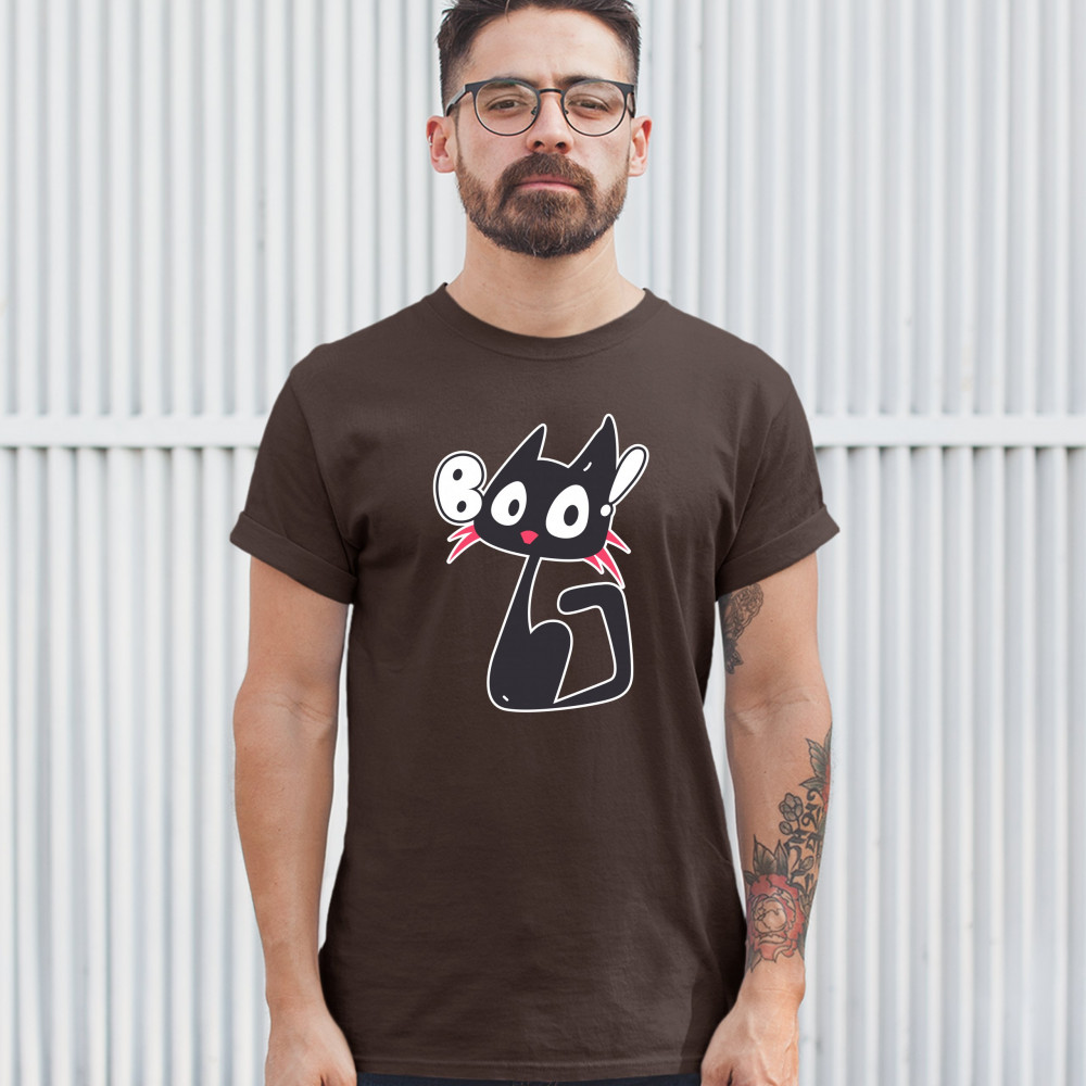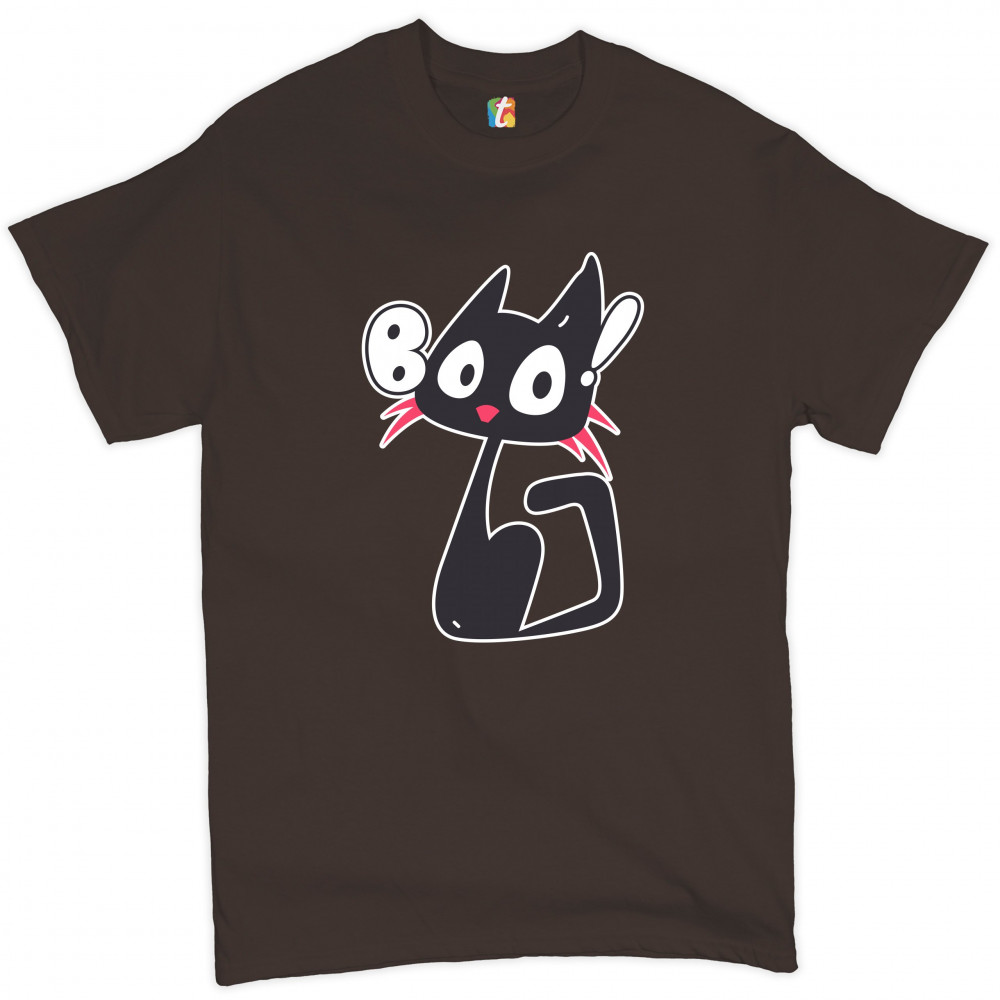 BOO KITTEN t-shirt happy halloween trick-or-treating funny cat men's tee brown