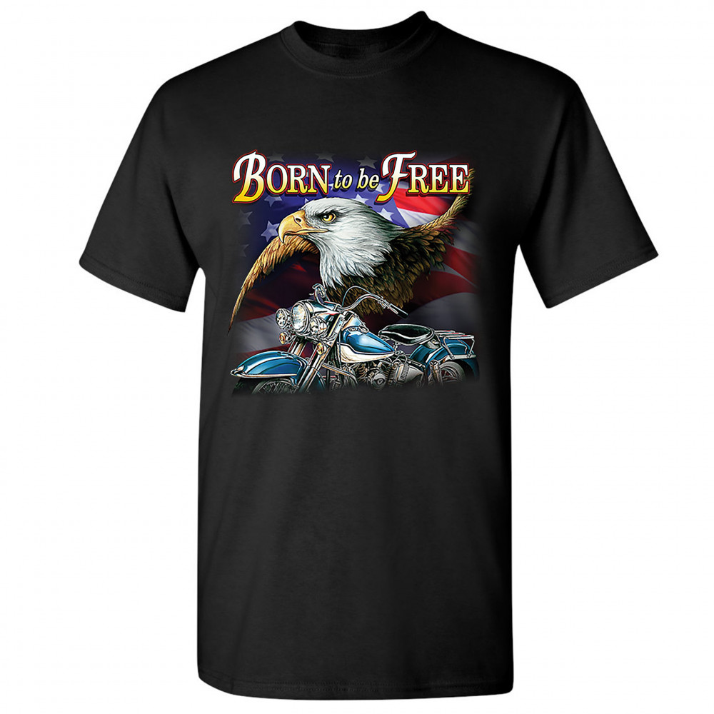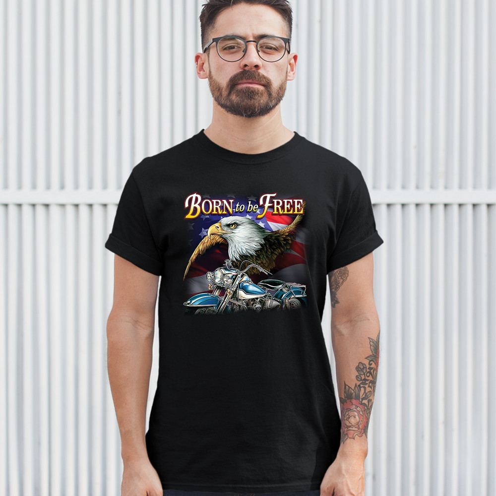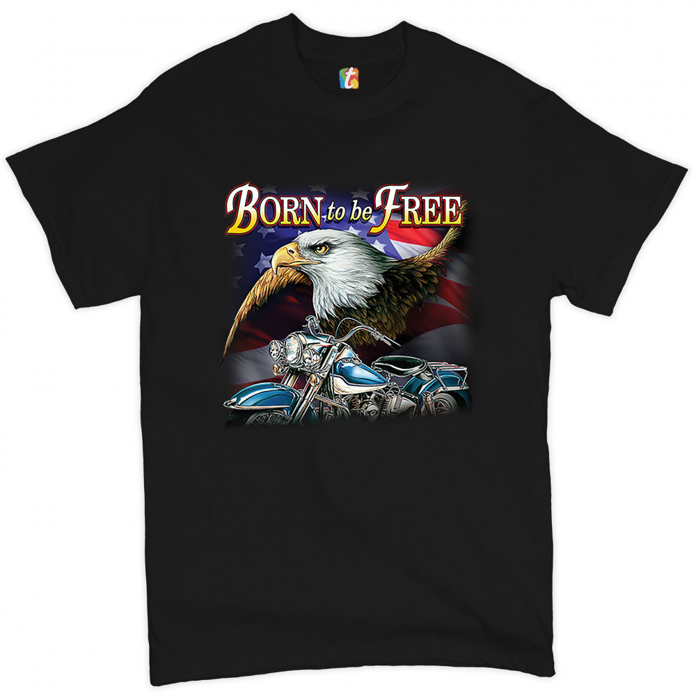 BORN TO BE FREE t-shirt american bald eagle chopper biker patriotic men's tee black