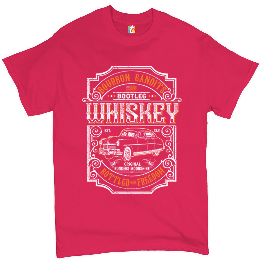 BOURBON BANDIT'S BOOTLEG WHISKEY t-shirt original runners moonshine men's tee hot pink