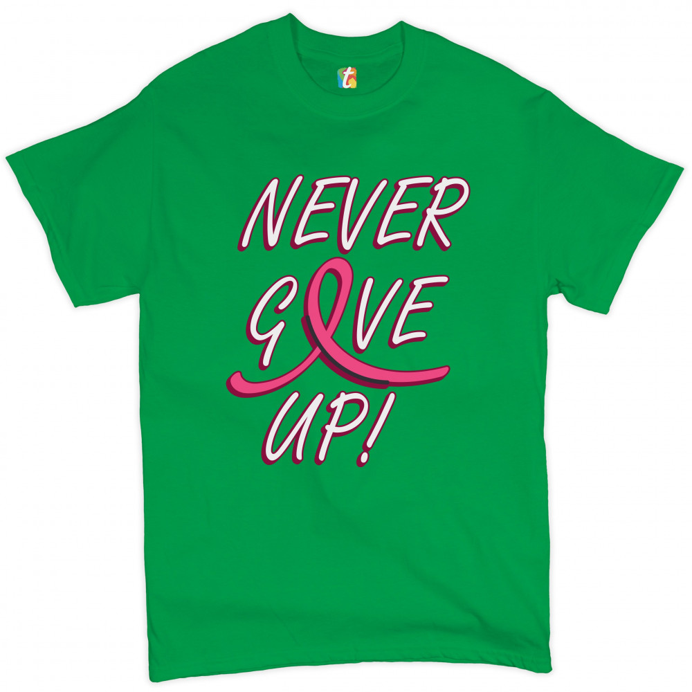 BREAST CANCER AWARENESS NEVER GIVE UP t-shirt pink ribbon men's tee green