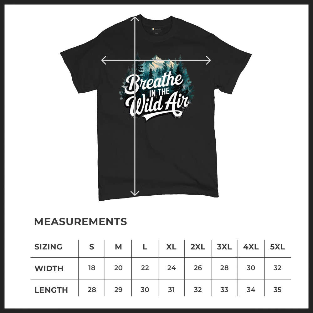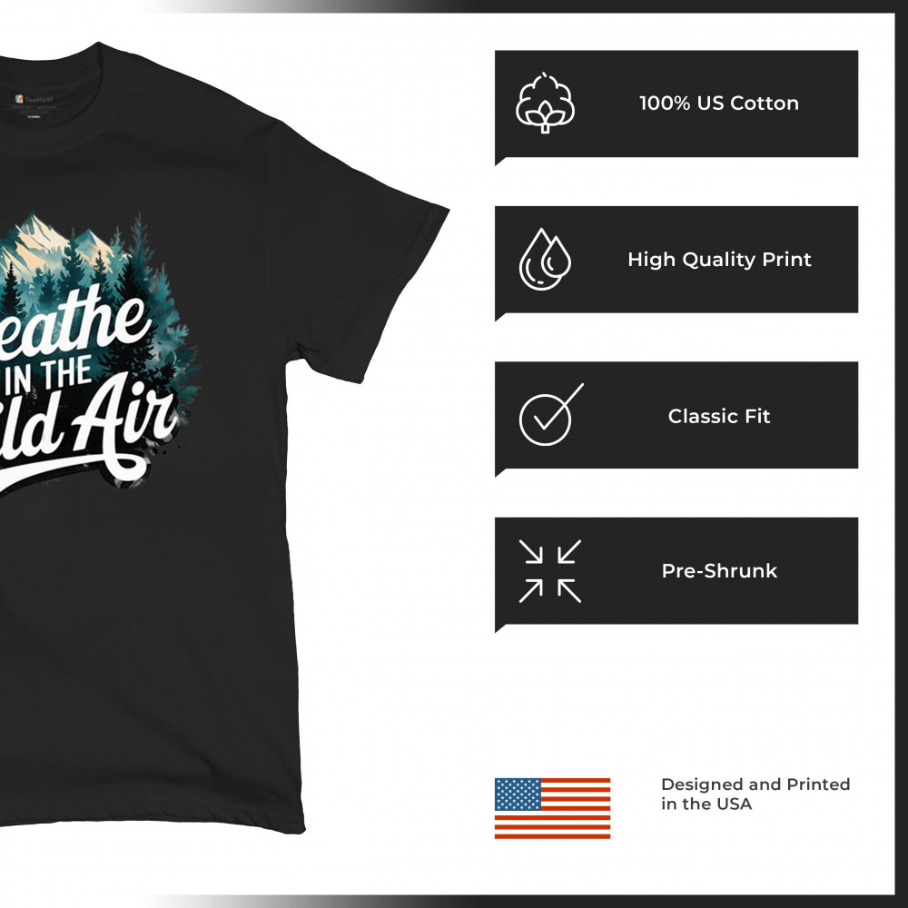 Breathe in the Wild Air brings nature to your wardrobe. Whether you're a forest lover, trail enthusiast, or weekend hiker, this design embraces adventure, wilderness vibes, and peaceful campfire moments. Ideal for outdoorsmen, off-grid travelers, and national park explorers seeking freedom in the trees.