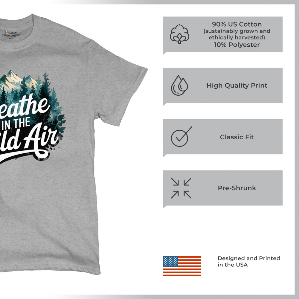 Breathe in the Wild Air brings nature to your wardrobe. Whether you're a forest lover, trail enthusiast, or weekend hiker, this design embraces adventure, wilderness vibes, and peaceful campfire moments. Ideal for outdoorsmen, off-grid travelers, and national park explorers seeking freedom in the trees.