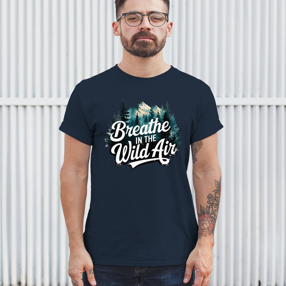 Breathe in the Wild Air brings nature to your wardrobe. Whether you're a forest lover, trail enthusiast, or weekend hiker, this design embraces adventure, wilderness vibes, and peaceful campfire moments. Ideal for outdoorsmen, off-grid travelers, and national park explorers seeking freedom in the trees.