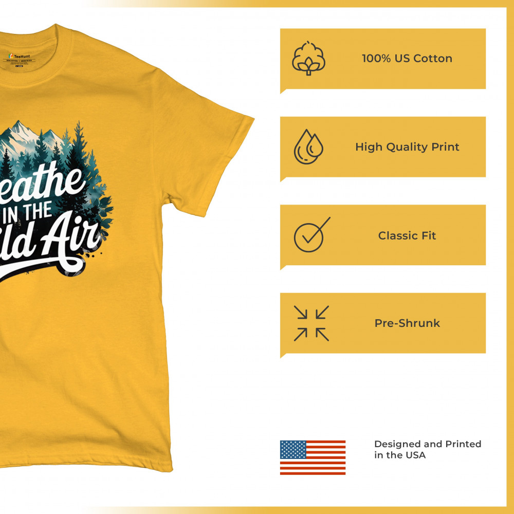 Breathe in the Wild Air brings nature to your wardrobe. Whether you're a forest lover, trail enthusiast, or weekend hiker, this design embraces adventure, wilderness vibes, and peaceful campfire moments. Ideal for outdoorsmen, off-grid travelers, and national park explorers seeking freedom in the trees.