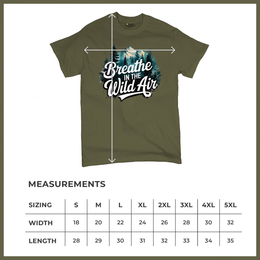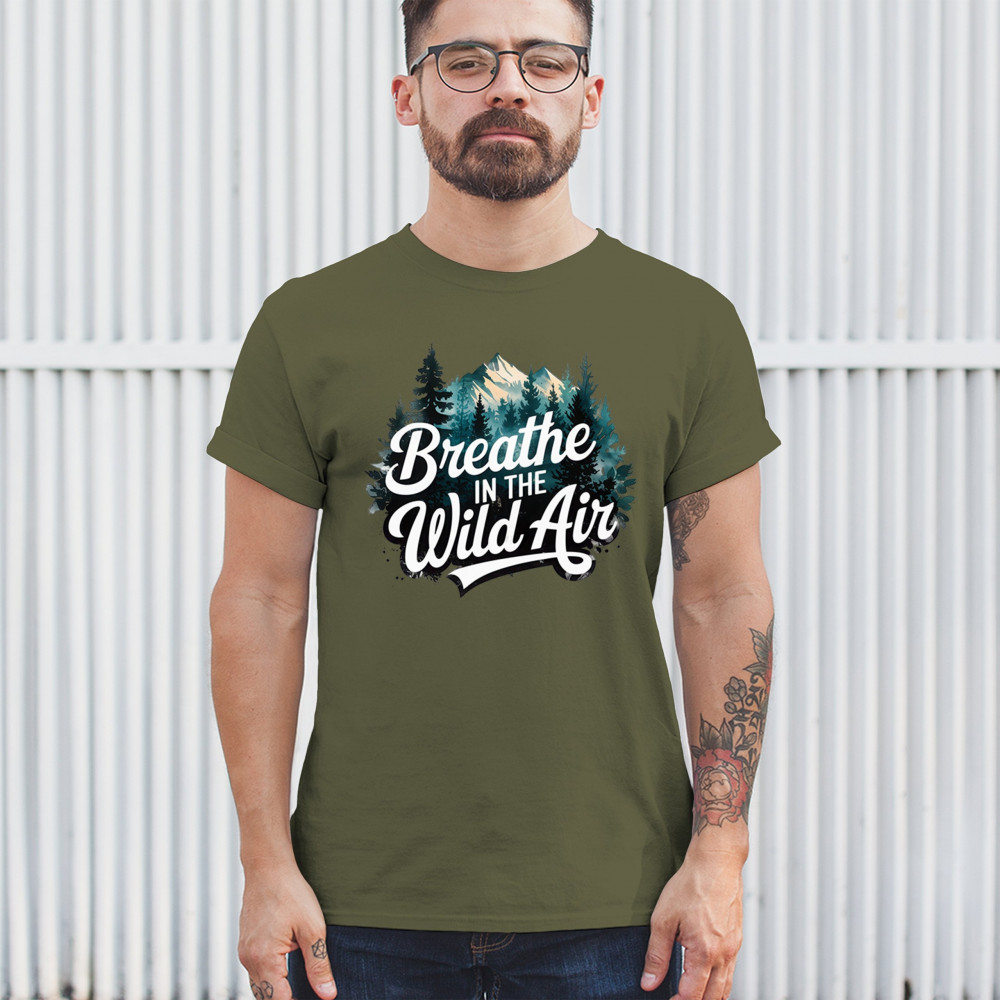 Breathe in the Wild Air brings nature to your wardrobe. Whether you're a forest lover, trail enthusiast, or weekend hiker, this design embraces adventure, wilderness vibes, and peaceful campfire moments. Ideal for outdoorsmen, off-grid travelers, and national park explorers seeking freedom in the trees.