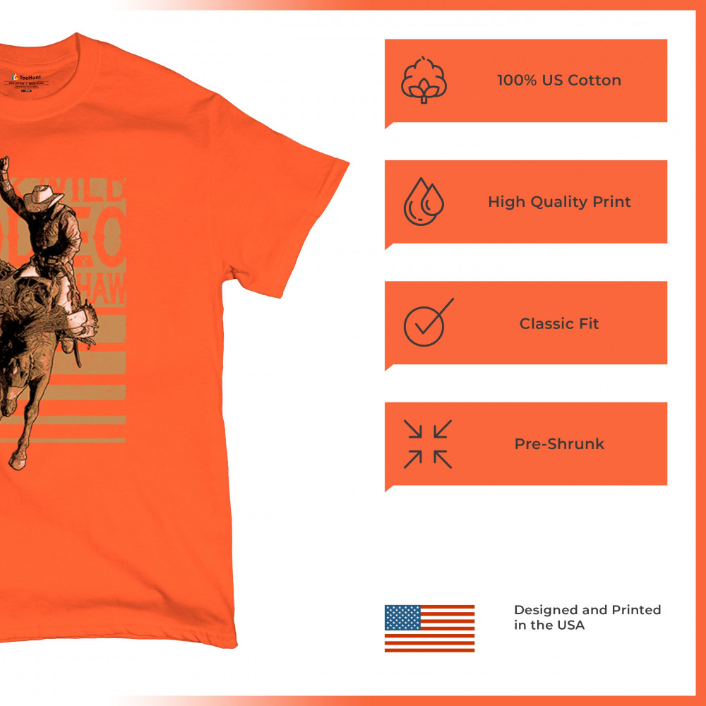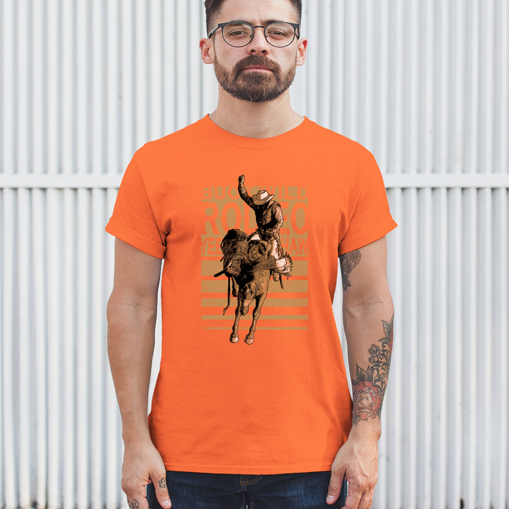 Rodeo bronc rider design with cowboy grit. Western graphic for fans of ranch life, bucking broncos, and rodeo events.