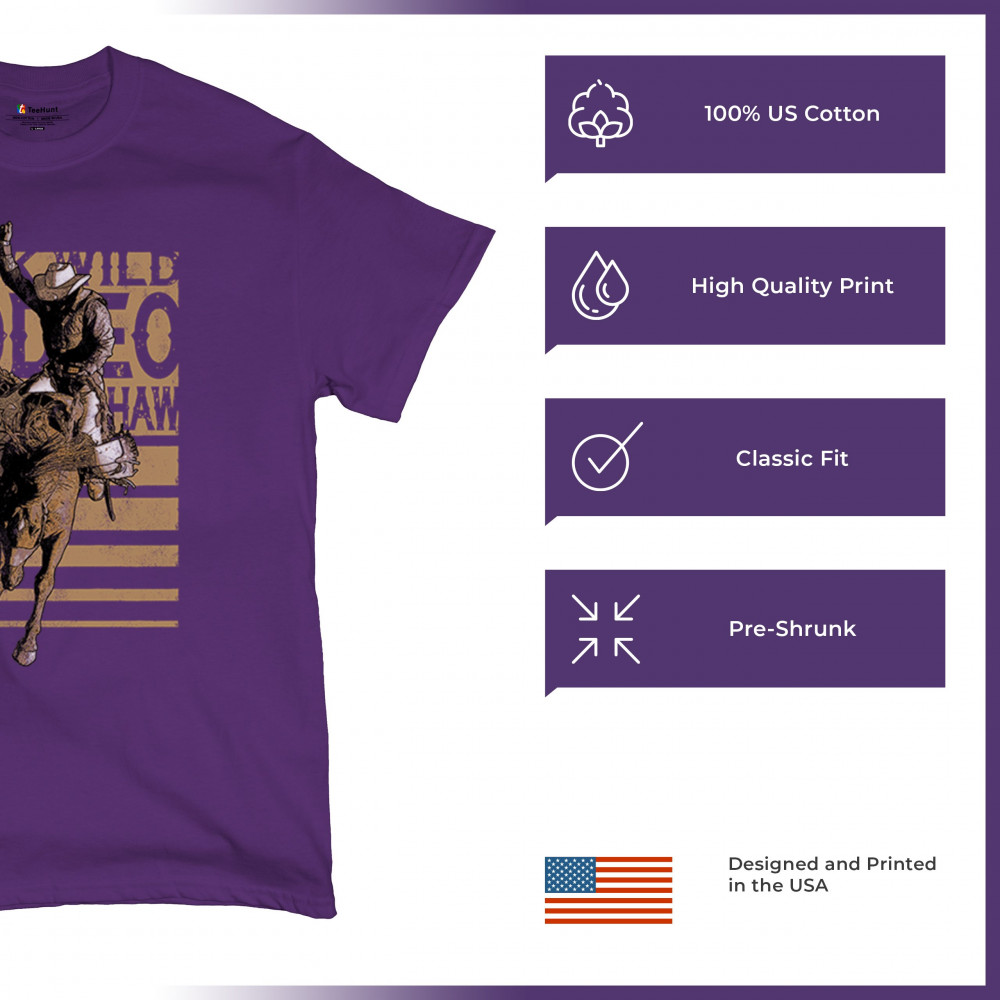 Rodeo bronc rider design with cowboy grit. Western graphic for fans of ranch life, bucking broncos, and rodeo events.