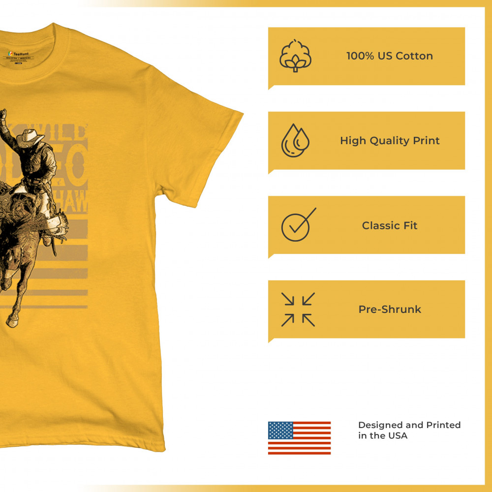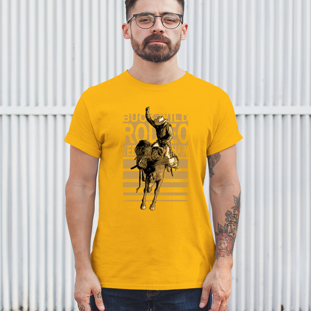 Rodeo bronc rider design with cowboy grit. Western graphic for fans of ranch life, bucking broncos, and rodeo events.