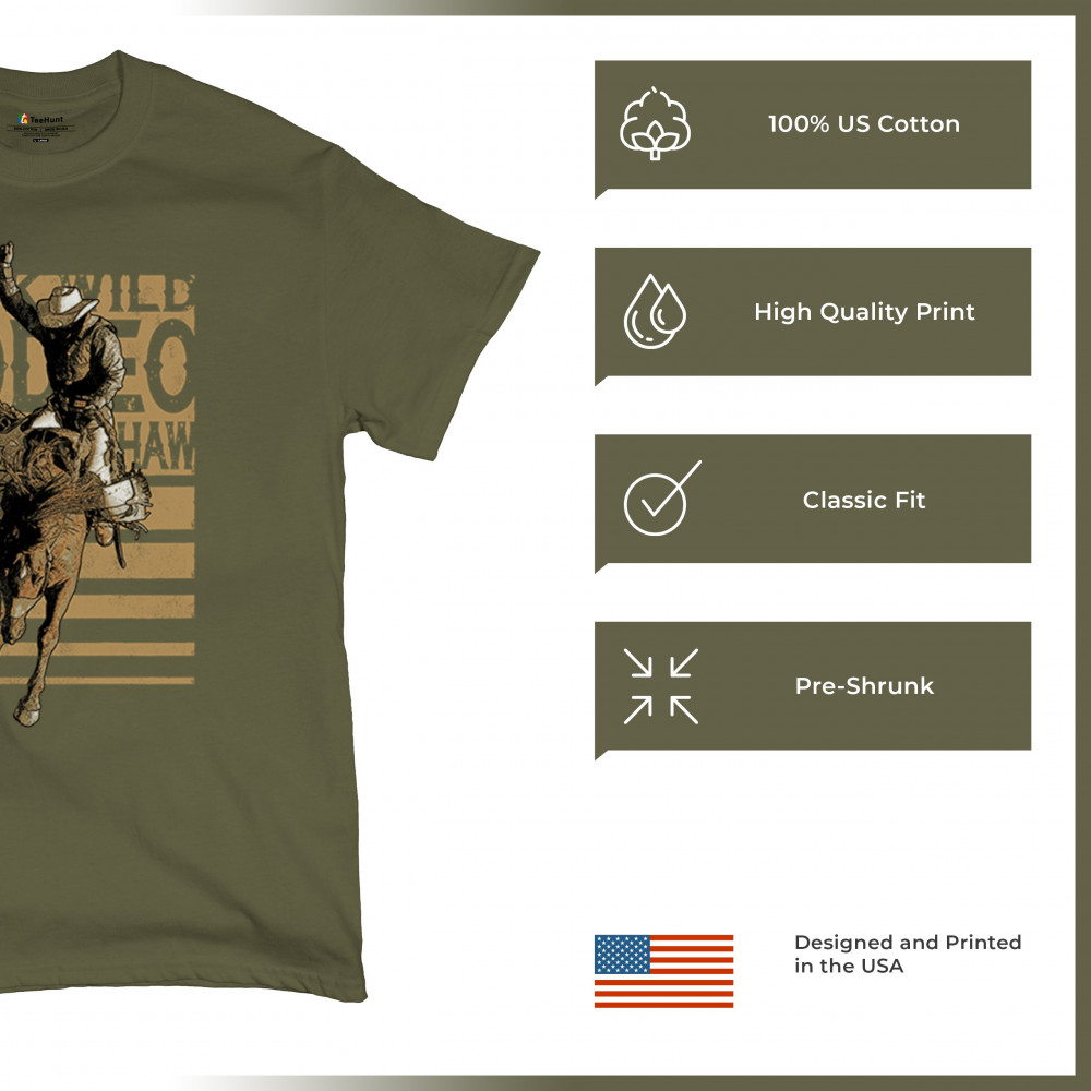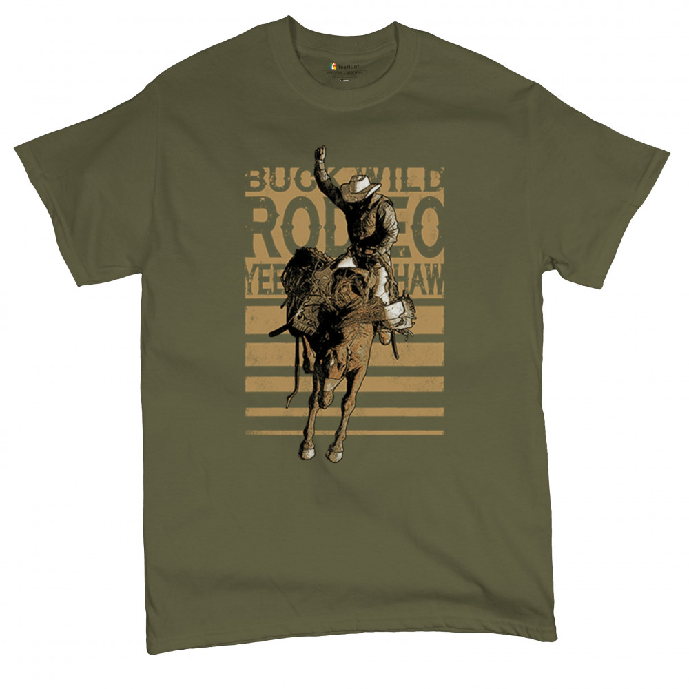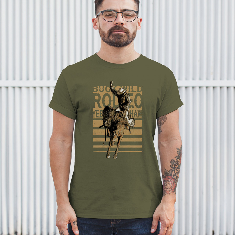 Rodeo bronc rider design with cowboy grit. Western graphic for fans of ranch life, bucking broncos, and rodeo events.