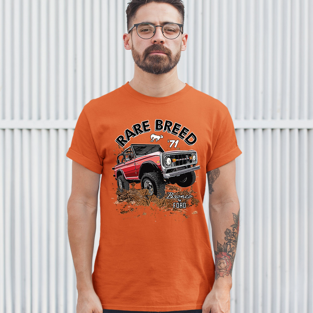 BRONCO BY FORD t-shirt rare breed '71 offroad ford truck licensed men's tee orange