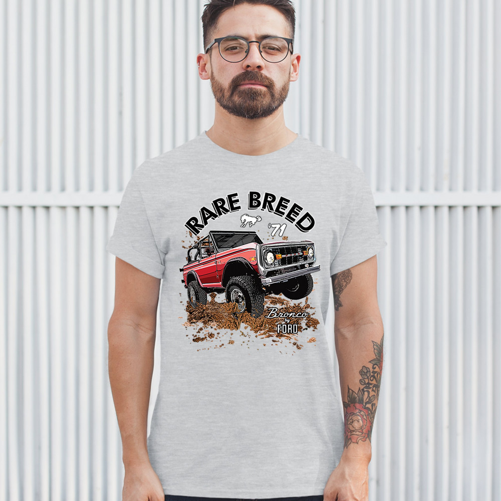 BRONCO BY FORD t-shirt rare breed '71 offroad ford truck licensed men's tee ash gray
