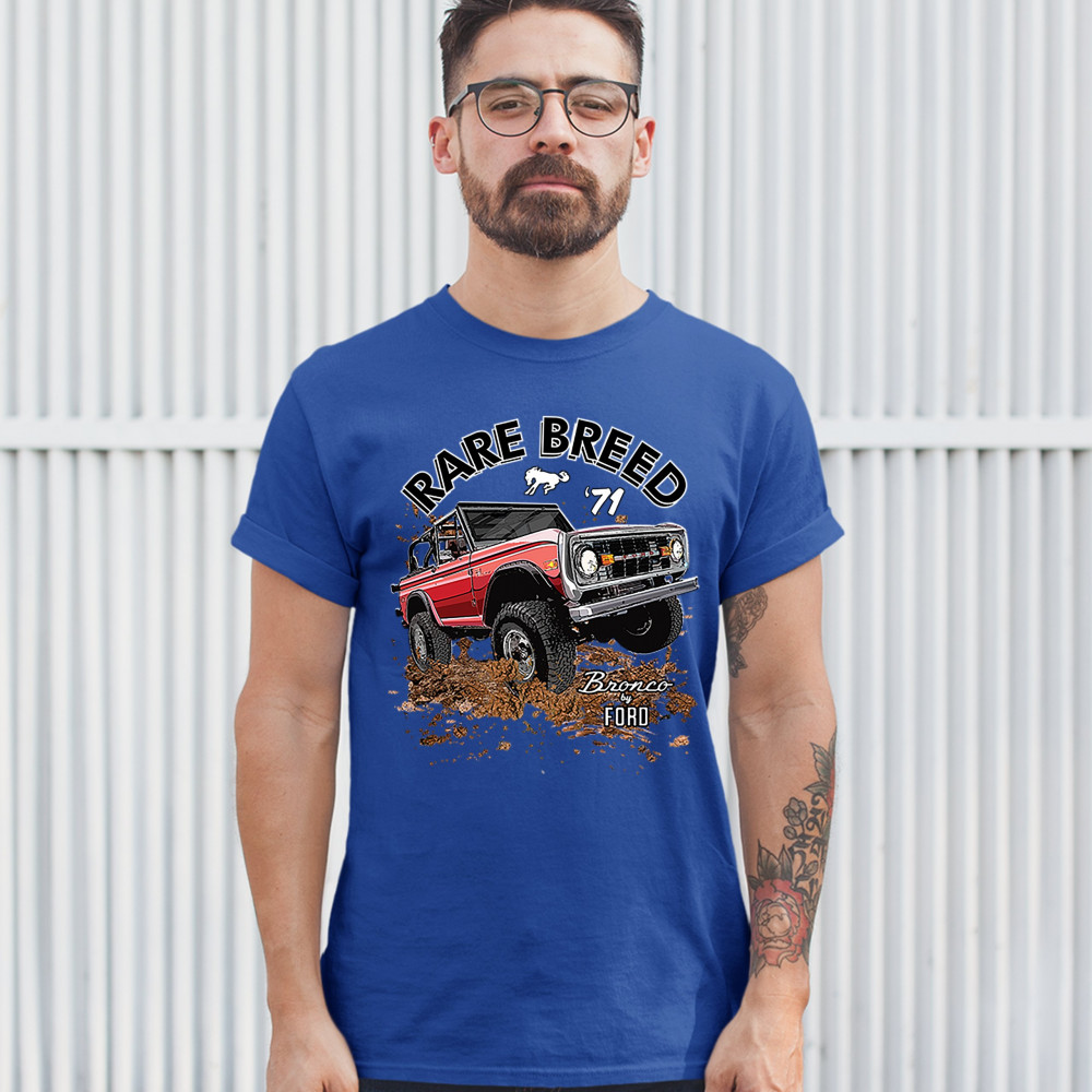 BRONCO BY FORD t-shirt rare breed '71 offroad ford truck licensed men's tee royal blue